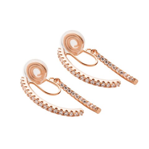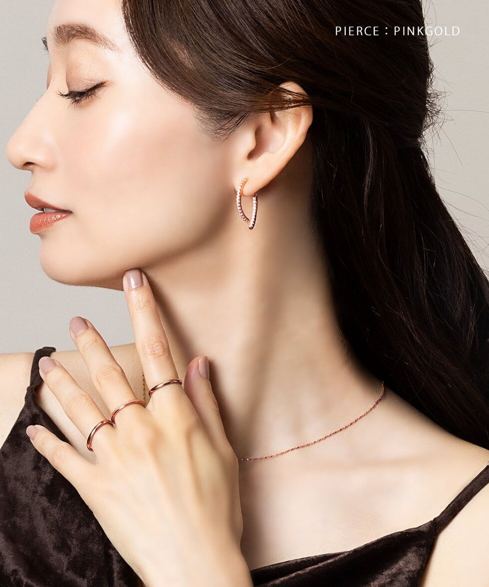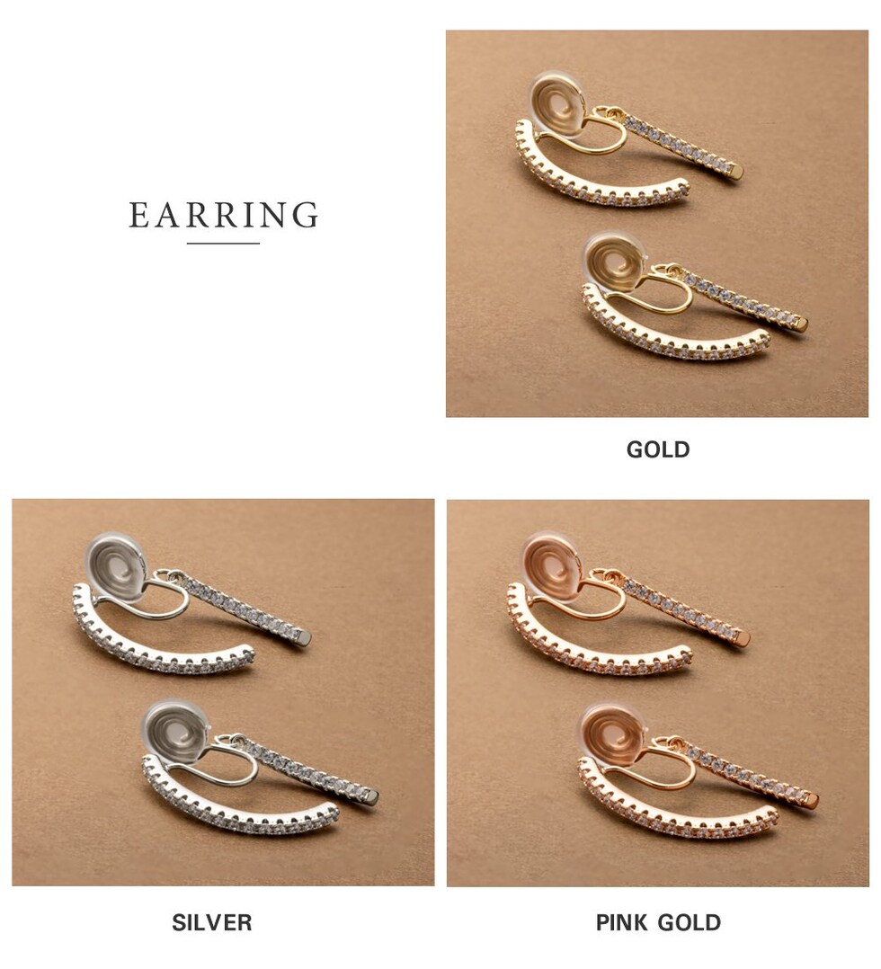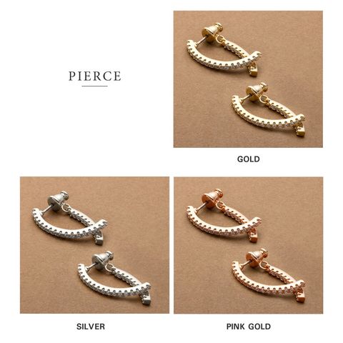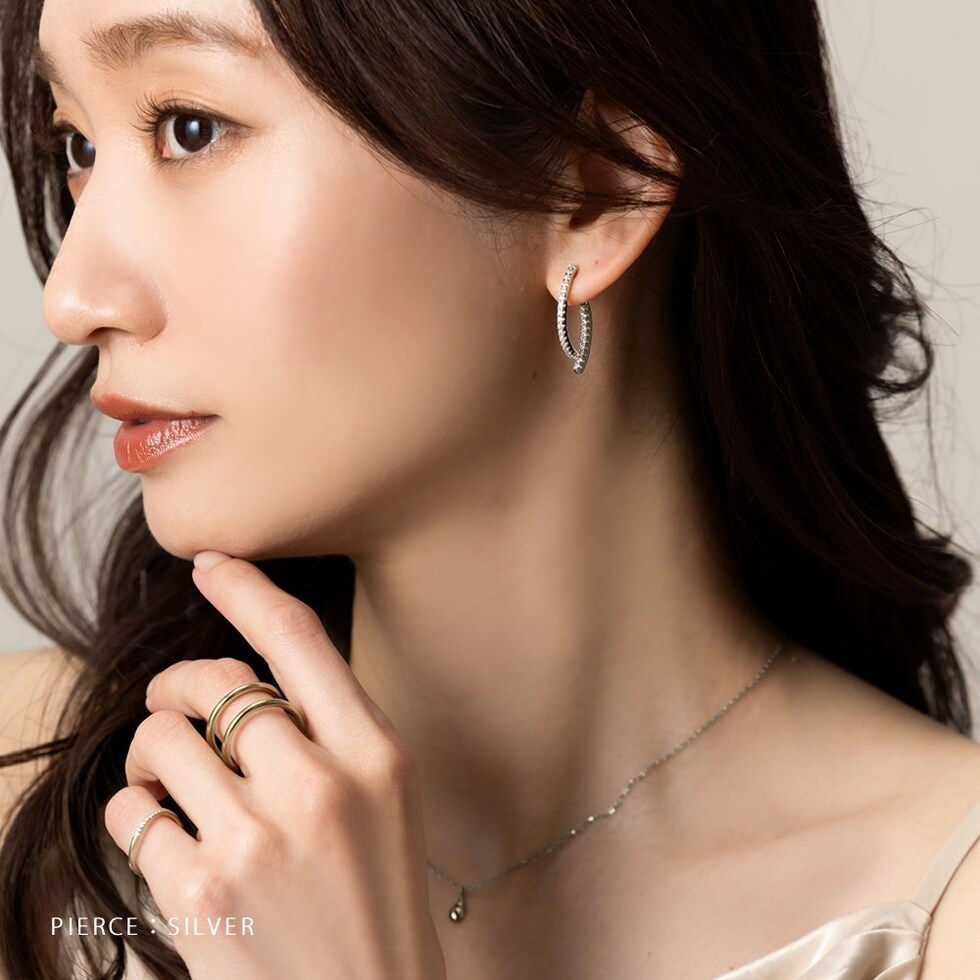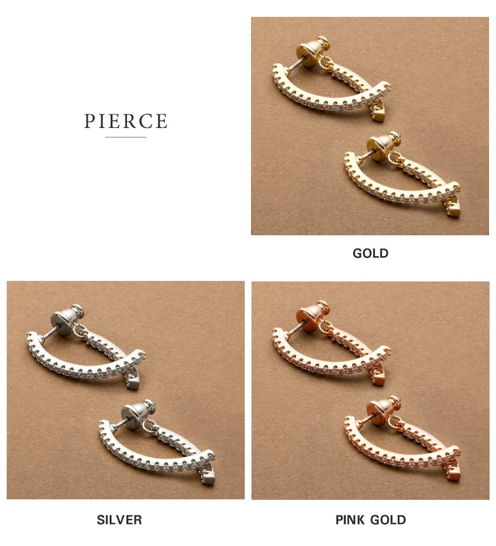 どの角度から見ても大人可愛いバックキャッチイヤリング/ピアス。ビジューラインがお顔周りを華やかに魅せ、グッとこなれた印象を演出します。イヤリングは落ちにくく軽い着け心地のシリコンパッド付きで、使いやすいのも嬉しいひと品。