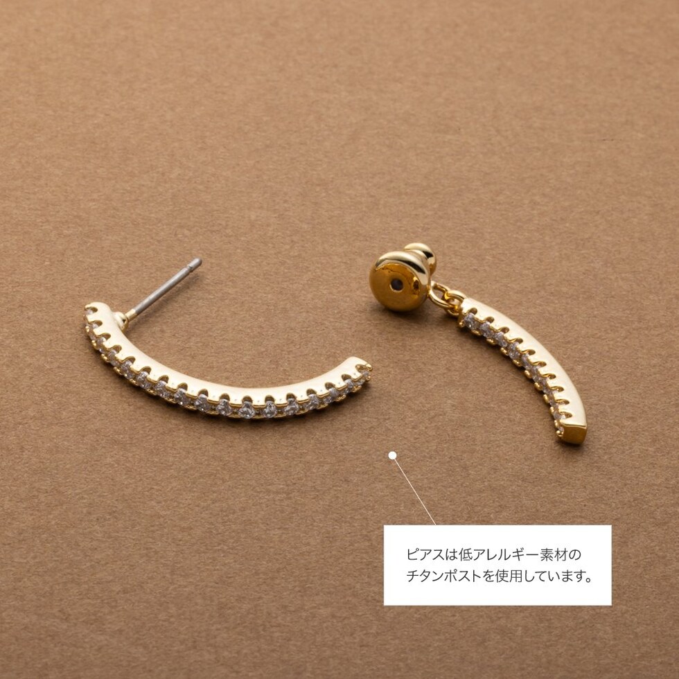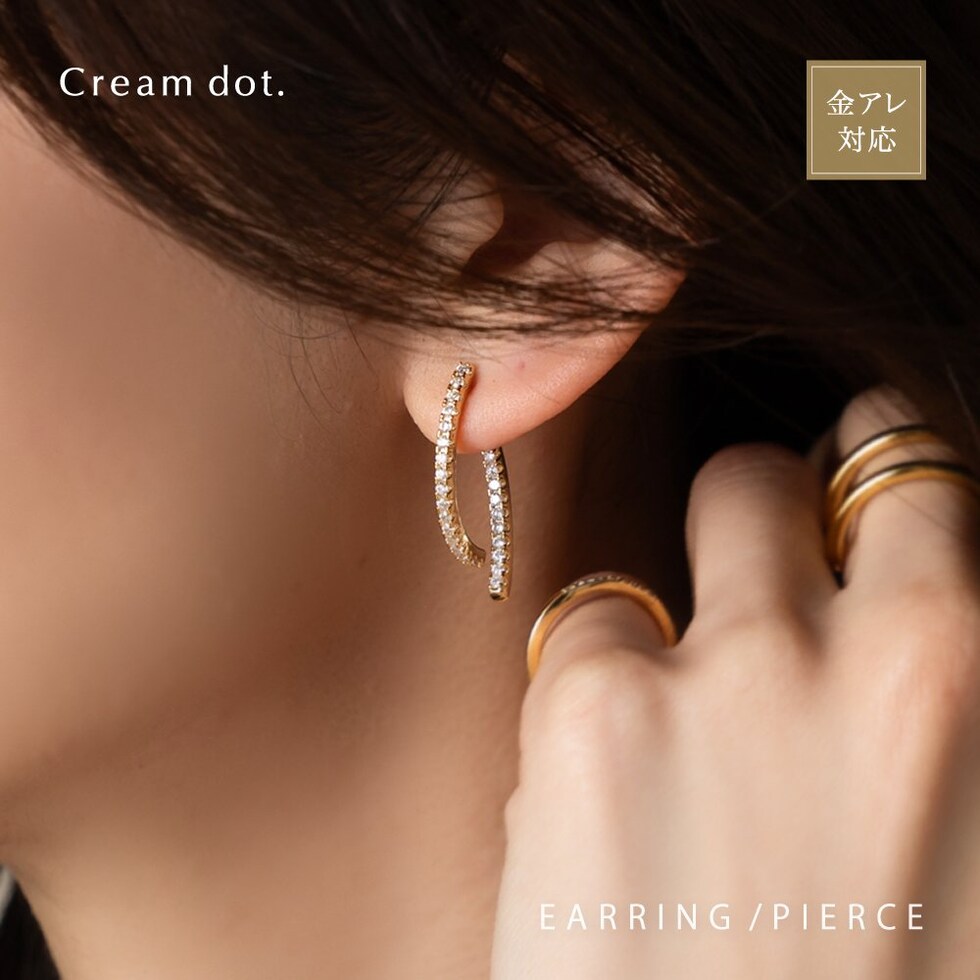 イヤリング ピアス 金属アレルギー ニッケルフリー レディース ビジュー ライン 揺れる バックキャッチ ワイヤーフィット 挟むだけ cream dot ゆうパケット [ピンクゴールド_イヤリング]