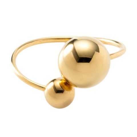 大きさの異なるメタルスフィアが艶めくリング。サイズ調整可能なフリーサイズで、お好みの指に着けれるのが魅力的。長時間の着用にも安心なステンレス製で、今っぽさも叶うオススメのひと品です。