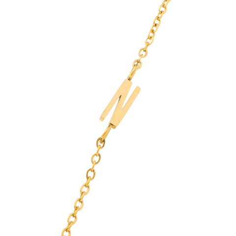 さりげなく控えめなイニシャルのステンレス製ブレスレット。華奢なあずきチェーンとスマートなモチーフで大人の手元に馴染むひと品。お気に入りが見つかる20typeで重ね着けやプレゼントにもオススメ◎