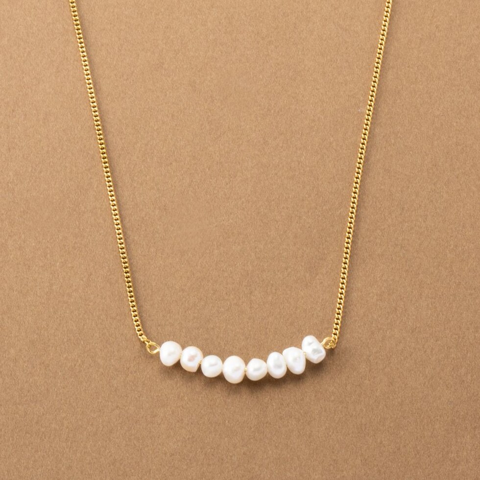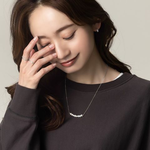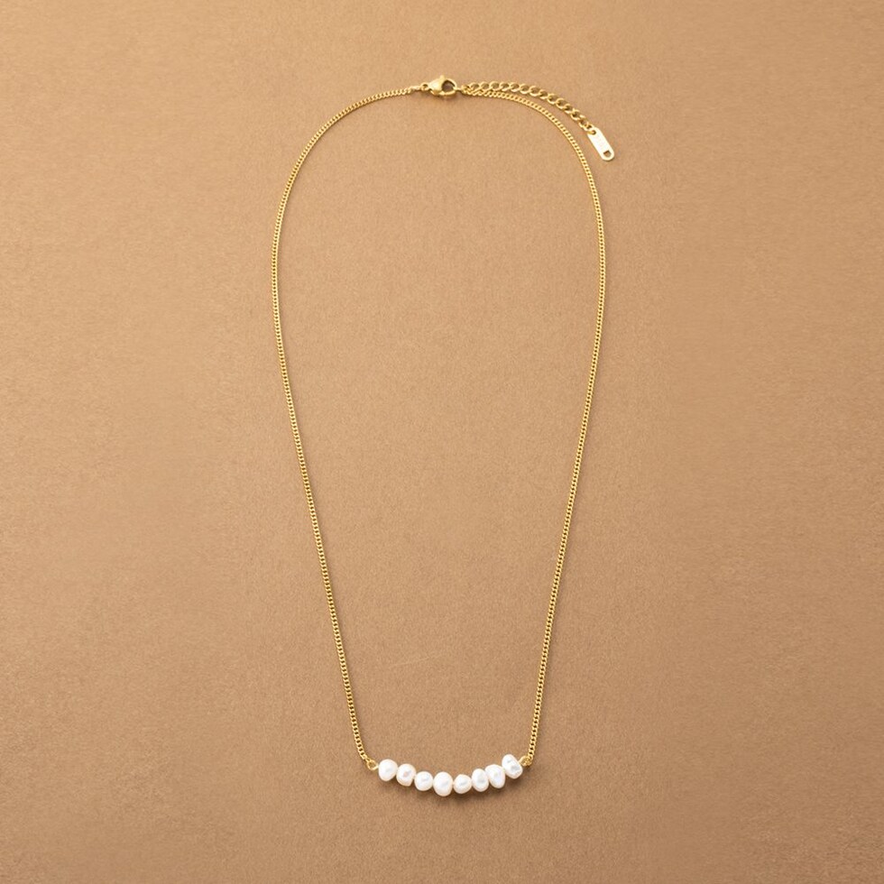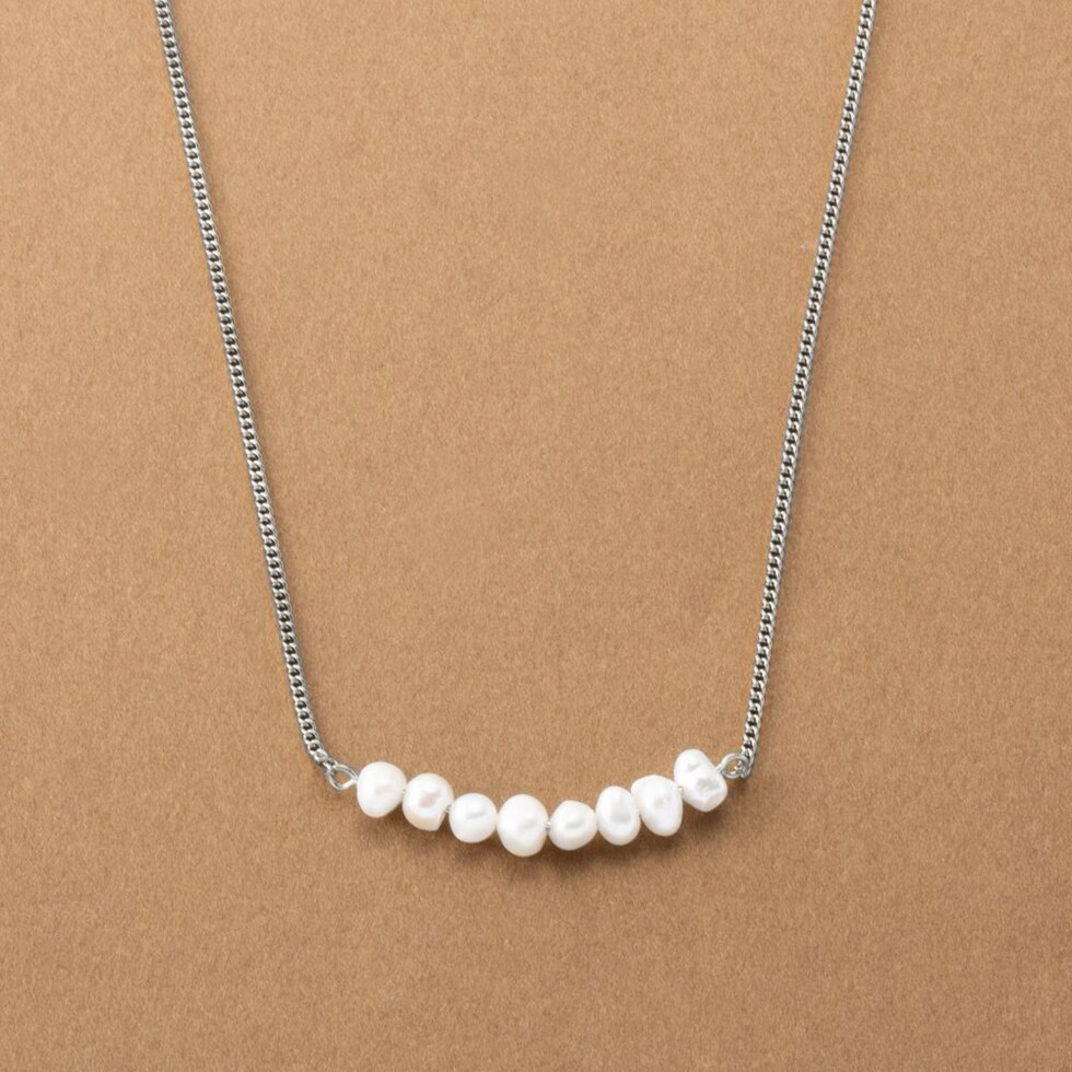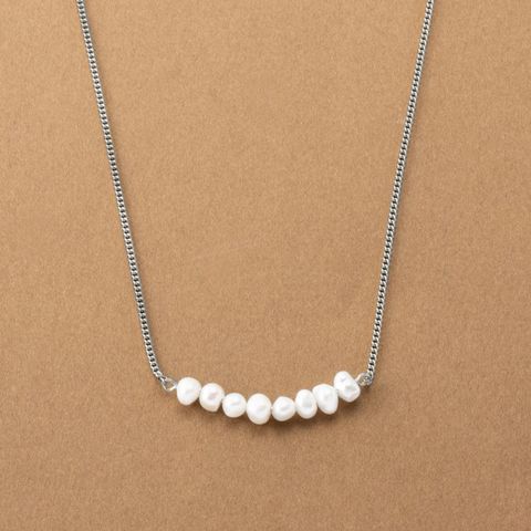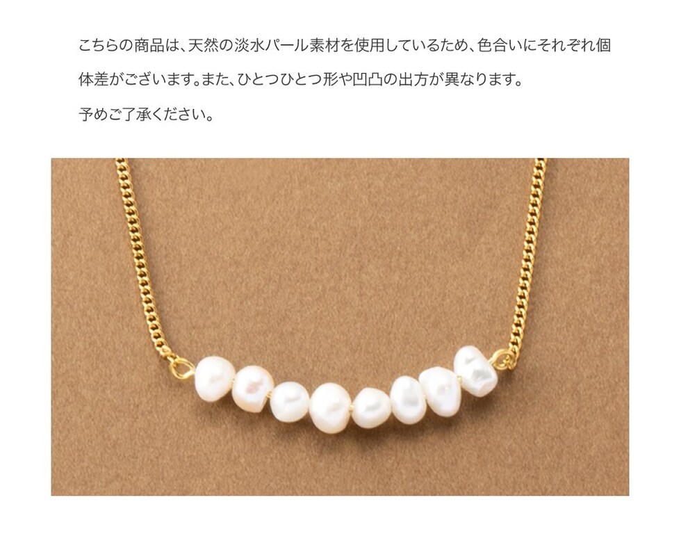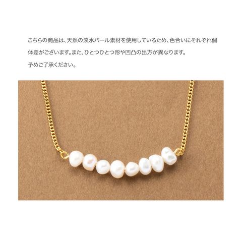 ナチュラルに艶めく淡水パールのカーブラインネックレス。緩やかなカーブを描く淡水パールが女性らしく上品な胸元を演出してくれます。カジュアルにもオケージョンにも合わせやすいデザインが◎肌馴染みもよく錆びにくいステンレス製だからデイリー使いにぴったりの一品です。