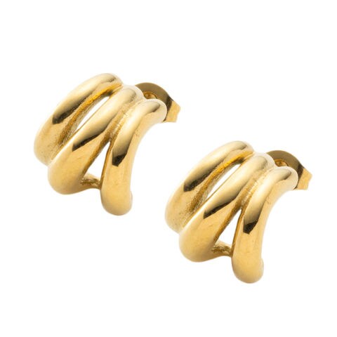 耳に沿うカーブフォルムとトリプルラインのピアス。程よい存在感がモダンで上品なアクセントを添えてくれる一品。錆びにくく傷に強いステンレス製だから、デイリーに活躍してくれそう。