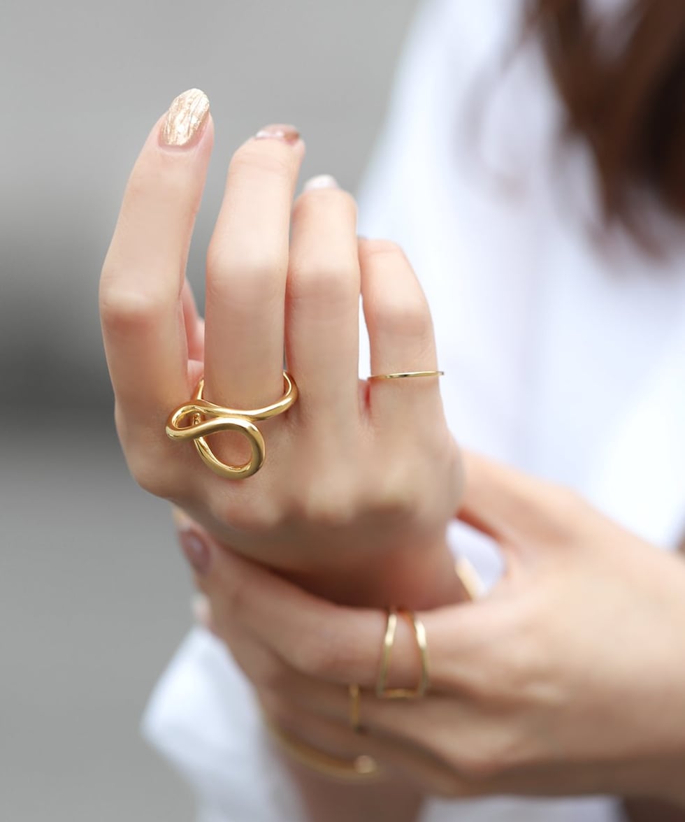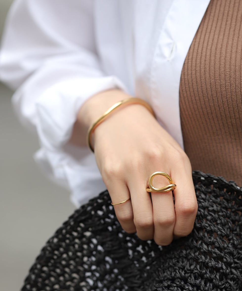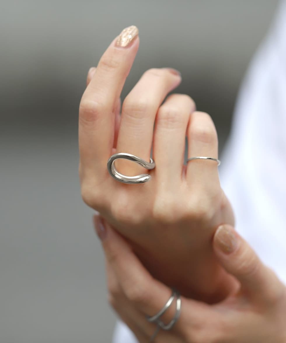 カーブラインの変形シルエットがニュアンスたっぷりなデザインリング。存在感バツグンで、手元コーデの主役として活躍間違いナシ。これひとつでお洒落な手元にアップデートしてくれます。錆びにくく傷に強いステンレス製で、デイリーに活躍◎長時間の着用も安心の低アレルギー素材です。