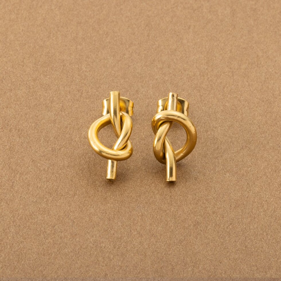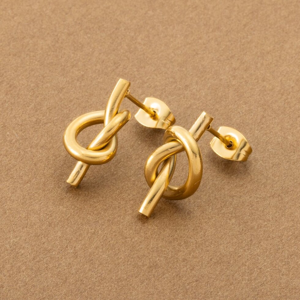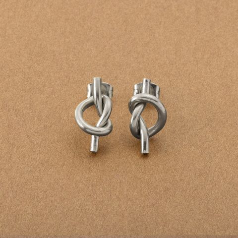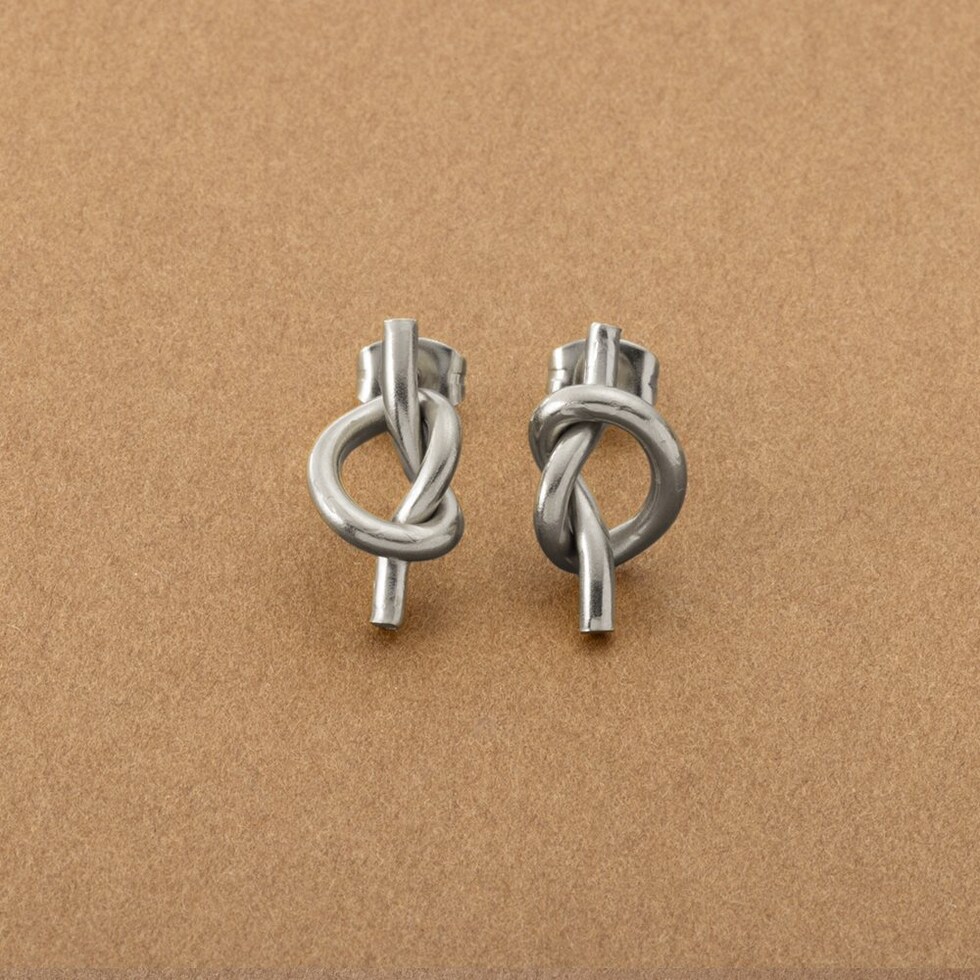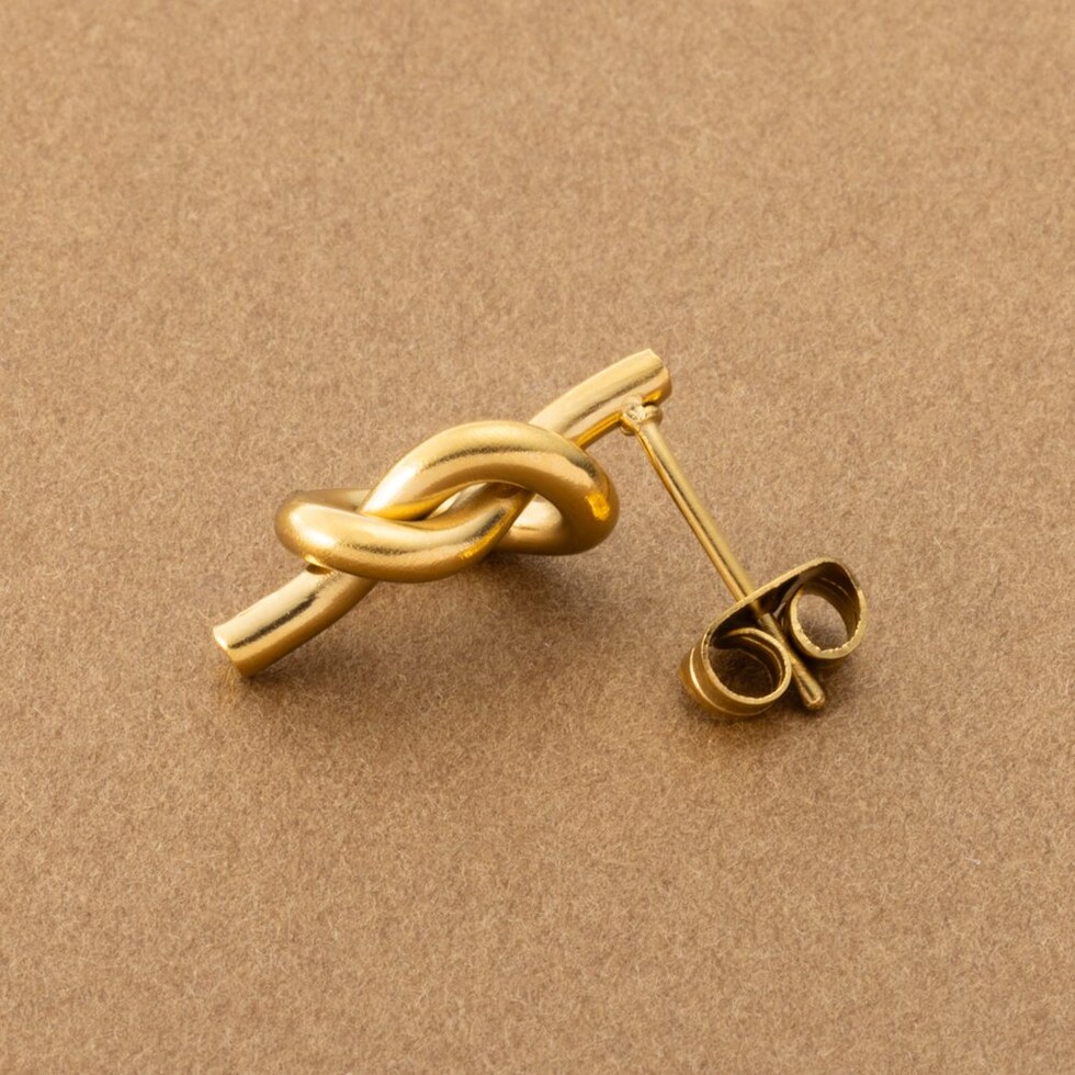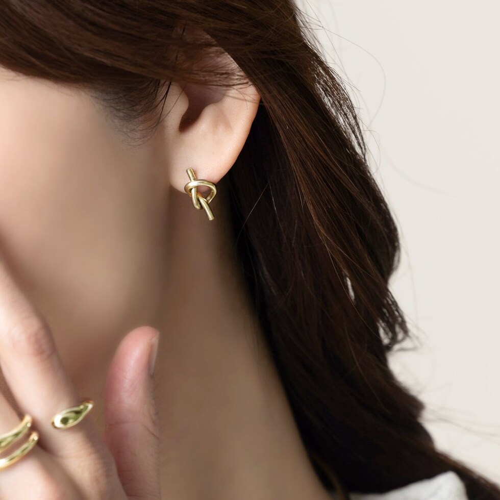 メタルラインで結び目をデザインしたノットピアス。シンプルなラインとさりげなく個性的なノットモチーフが大人コーデにぴったりなアイテムです。錆びにくいステンレス製でデイリーに活躍しそう。