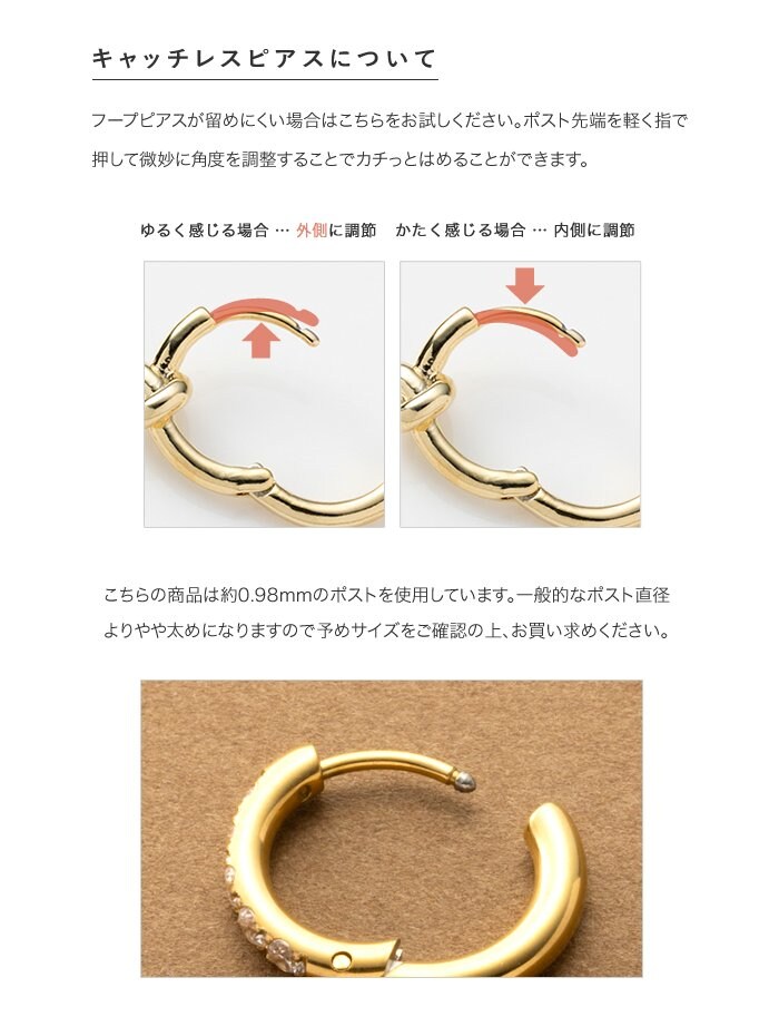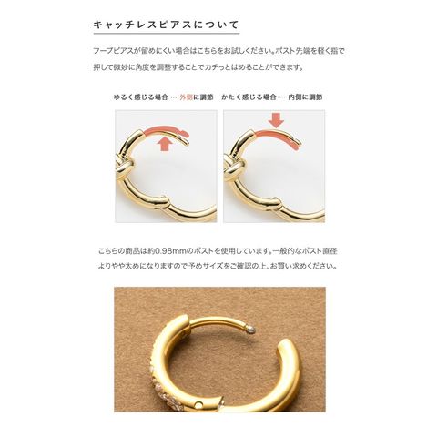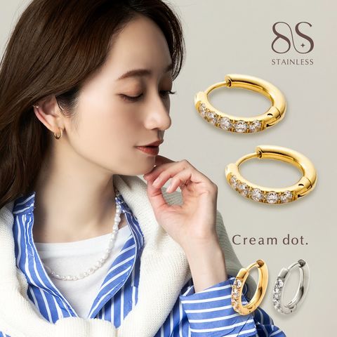 ピアス ステンレス 金属アレルギー サージカルステンレス レディース つけっぱなし キャッチレス 中折れ 開閉式 フープ ビジューライン cream dot ゆうパケット [シルバー_ピアス]