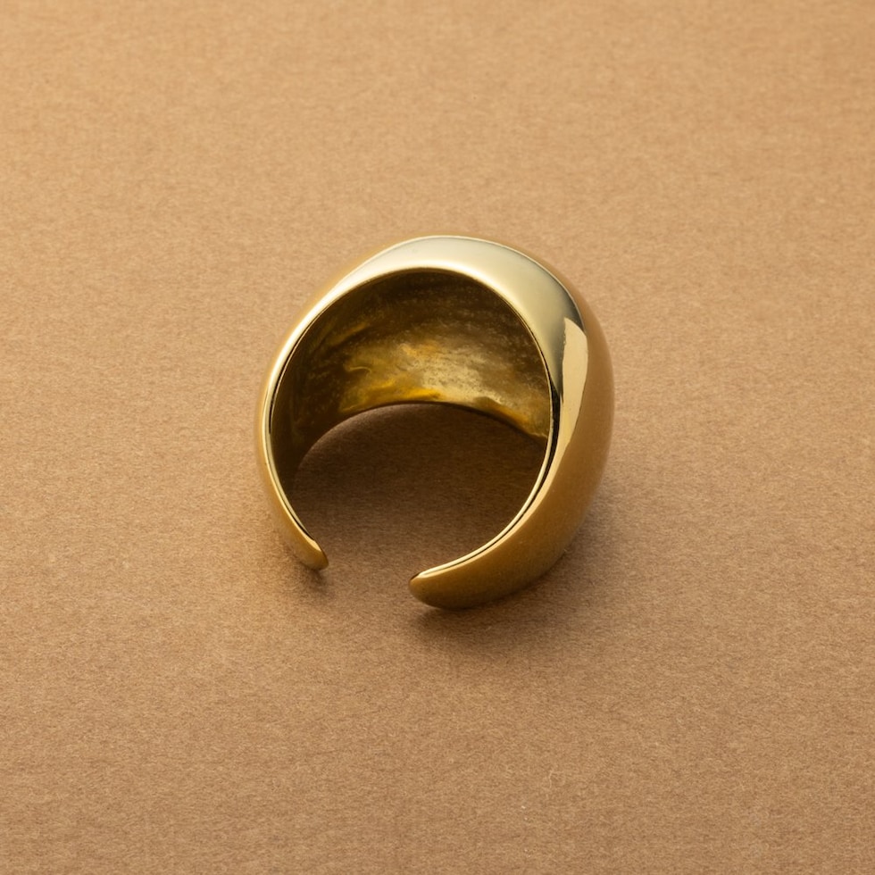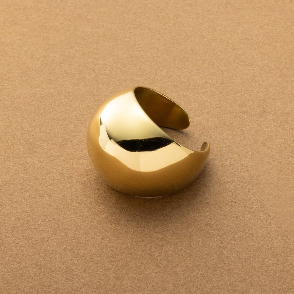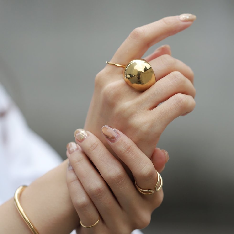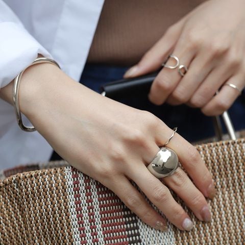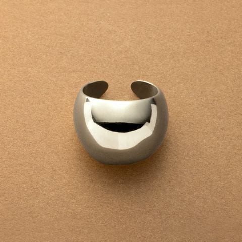 ぷっくり艶めくステンレス製大ぶりリング。中央に向かって幅が広がるビッグシルエットとメタルの艶感が存在感バツグン。手元をボリューミーに演出してくれるから気分まで上がるアイテム◎