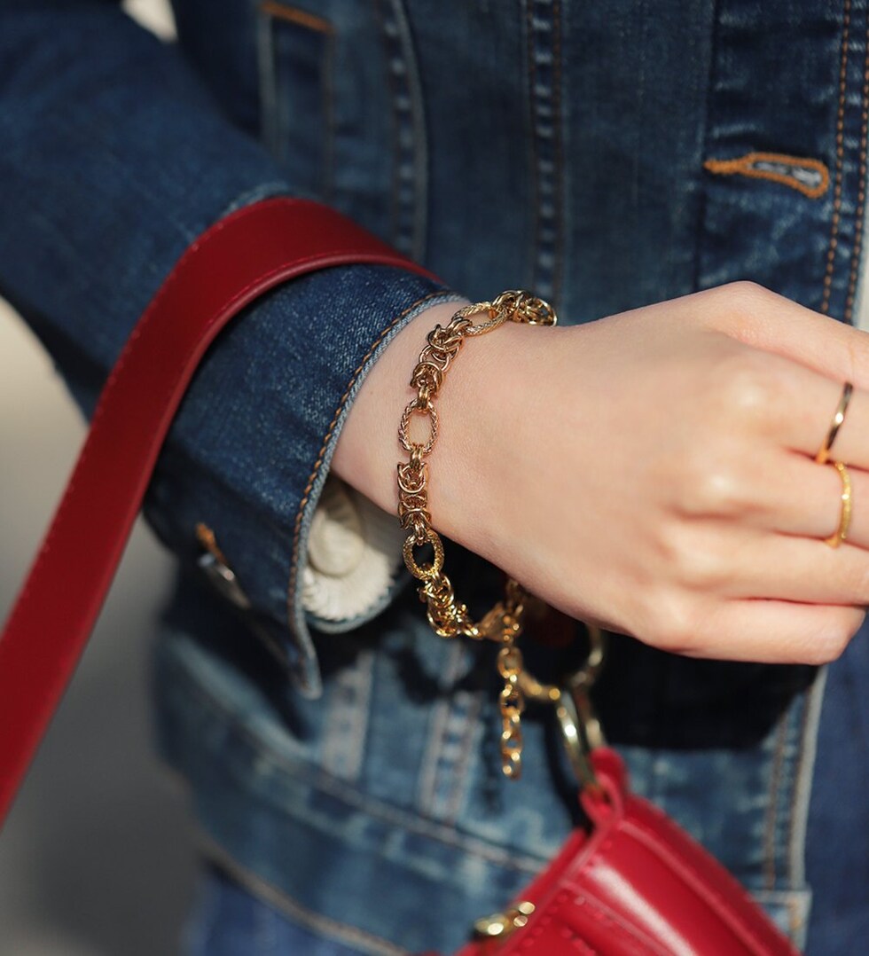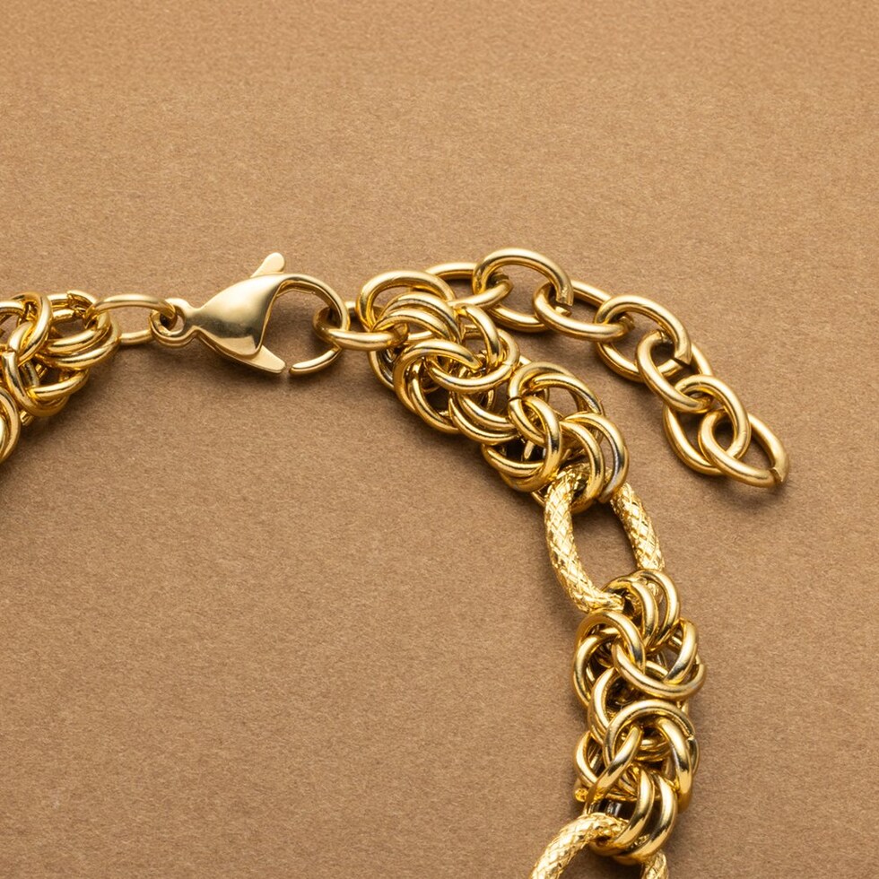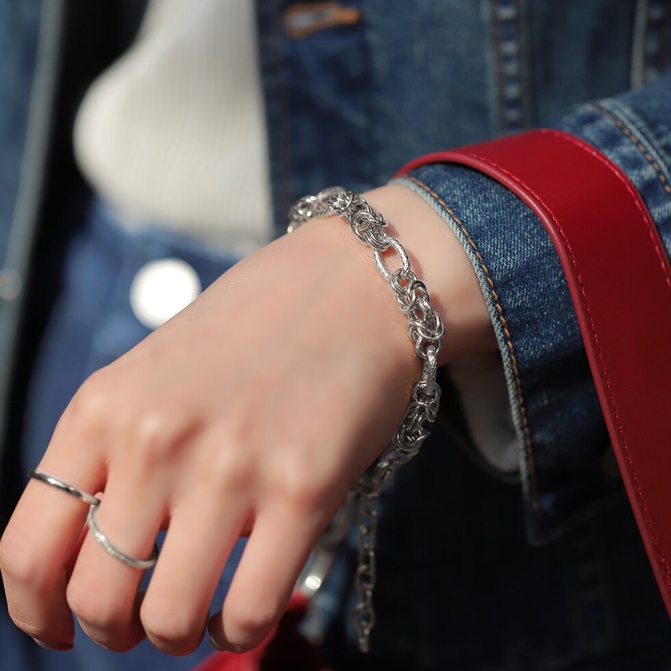 凹凸加工を施したオーバルモチーフとボリュームチェーンをMIXしたブレスレット。光を受けてニュアンスたっぷりに輝くデザインとボリューミーなシルエットがひと味違った洗練された手元に導きます。シンプルスタイルやカジュアルコーデに映える存在感抜群なアイテム◎錆びにくく傷に強いステンレス製で、長時間の着用も安心の低アレルギー素材です。