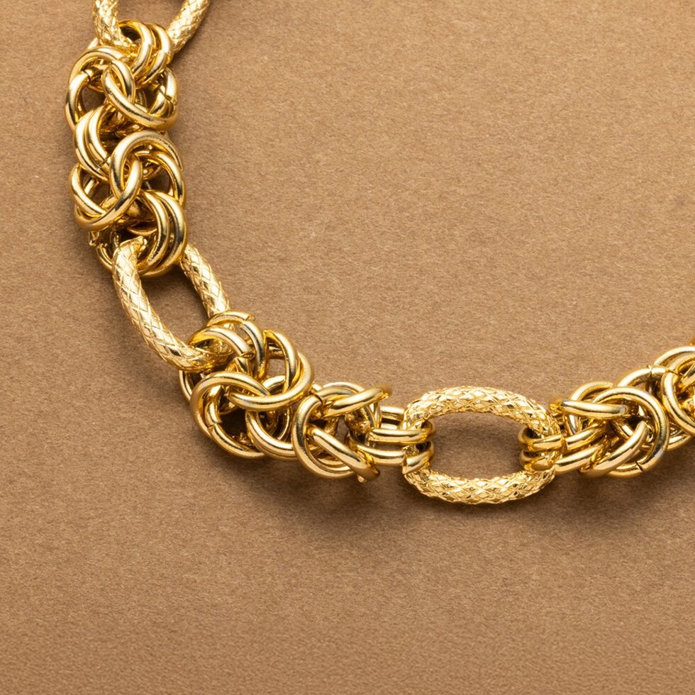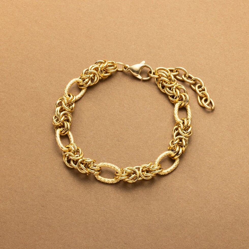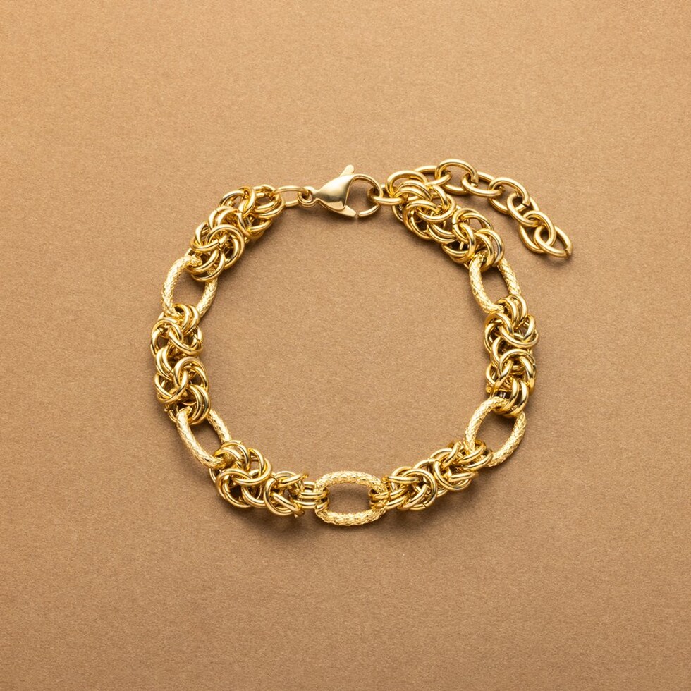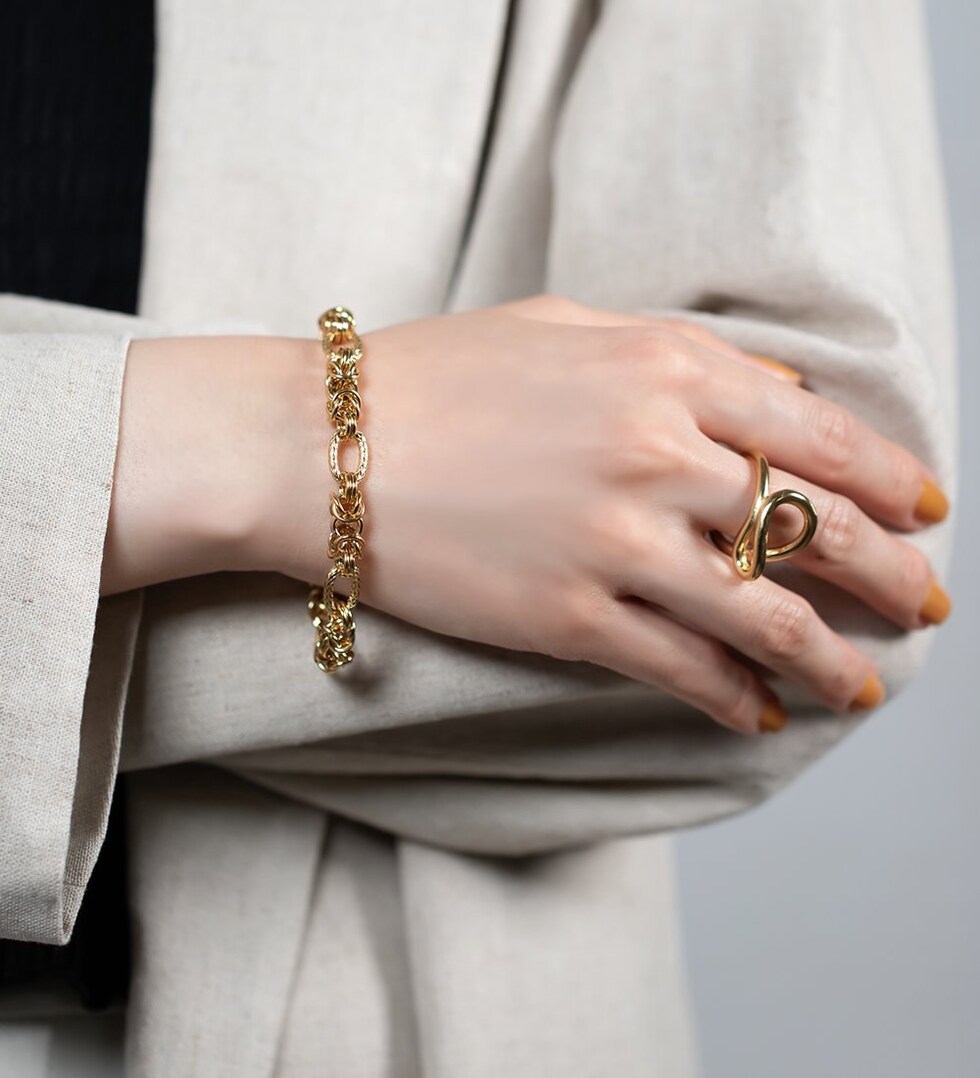 凹凸加工を施したオーバルモチーフとボリュームチェーンをMIXしたブレスレット。光を受けてニュアンスたっぷりに輝くデザインとボリューミーなシルエットがひと味違った洗練された手元に導きます。シンプルスタイルやカジュアルコーデに映える存在感抜群なアイテム◎錆びにくく傷に強いステンレス製で、長時間の着用も安心の低アレルギー素材です。