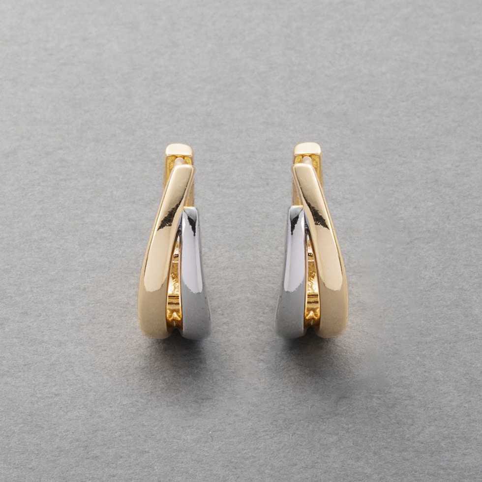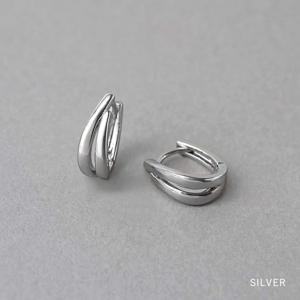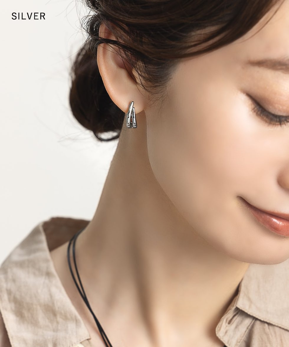 ミックスカラー×ツイストのキャッチレスフープピアス。レイヤード風に重なったメタルラインが、耳元に程よい存在感を添えてくれる。 艶感とシンプルなフォルムで、トレンドに左右されずデイリーに長く愛用できる一品です。 カジュアルにもキレイめにも馴染む万能アイテムです。
