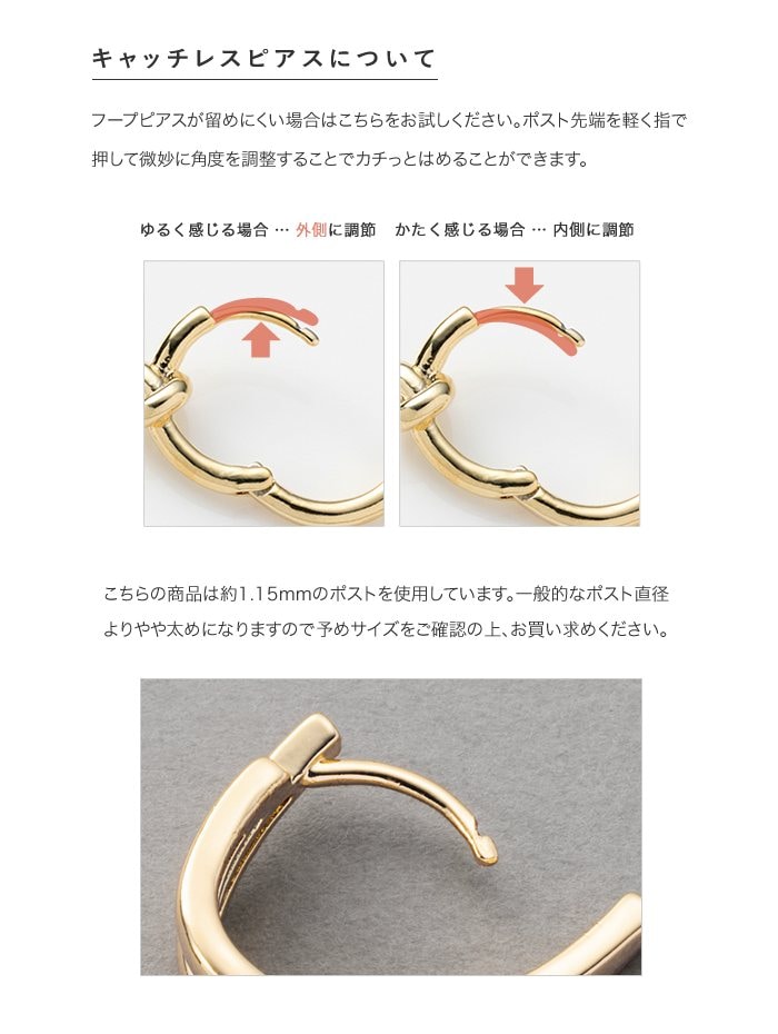 ピアス 金属アレルギー ニッケルフリー レディース キャッチレス 中折れ 開閉式 ワンタッチ フープ ツイスト レイヤード風 cream dot ゆうパケット [ミックスシルバー_ピアス]