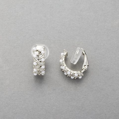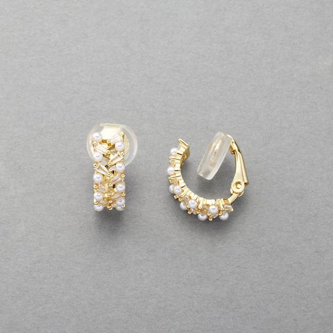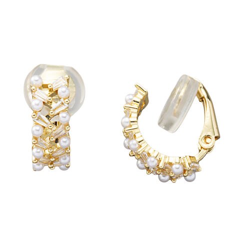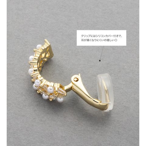 イヤーカフ 金属アレルギー ニッケルフリー レディース クリップ式 パール ビジュー フープ イヤーカフ 2way 両耳用 cream dot ゆうパケット [ゴールド_イヤリング]