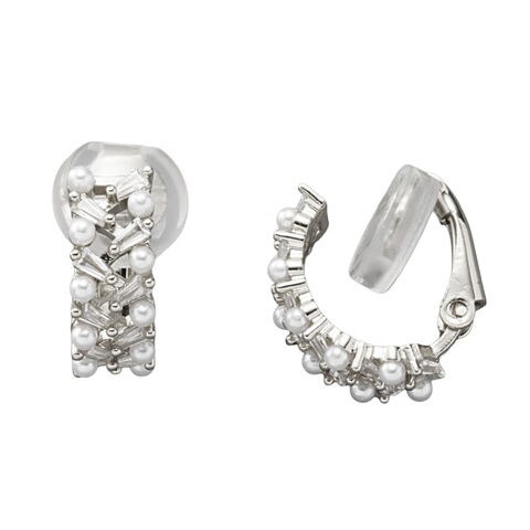 イヤーカフ 金属アレルギー ニッケルフリー レディース クリップ式 パール ビジュー フープ イヤーカフ 2way 両耳用 cream dot ゆうパケット [シルバー_イヤリング]
