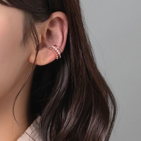 イヤーカフ 金属アレルギー ニッケルフリー レディース イヤーカフ イヤカフ 片耳用 ビジュー 3連 メタル レイヤード風 cream dot ゆうパケット [ゴールド_フリーサイズ]
