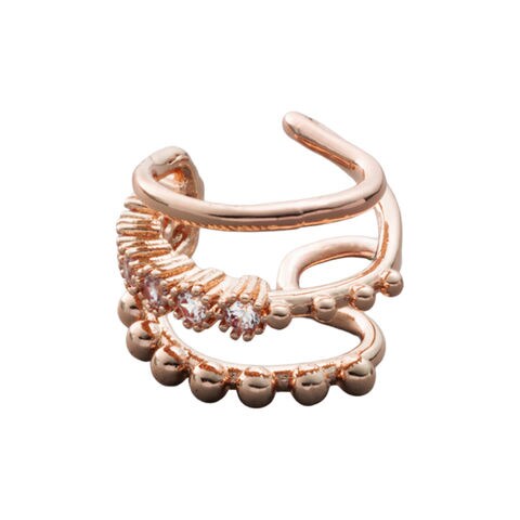 イヤーカフ 金属アレルギー ニッケルフリー レディース イヤーカフ イヤカフ 片耳用 ビジュー 3連 メタル レイヤード風 cream dot ゆうパケット [ピンクゴールド_フリーサイズ]