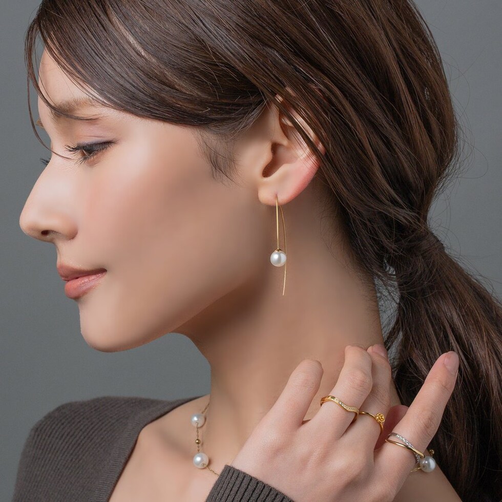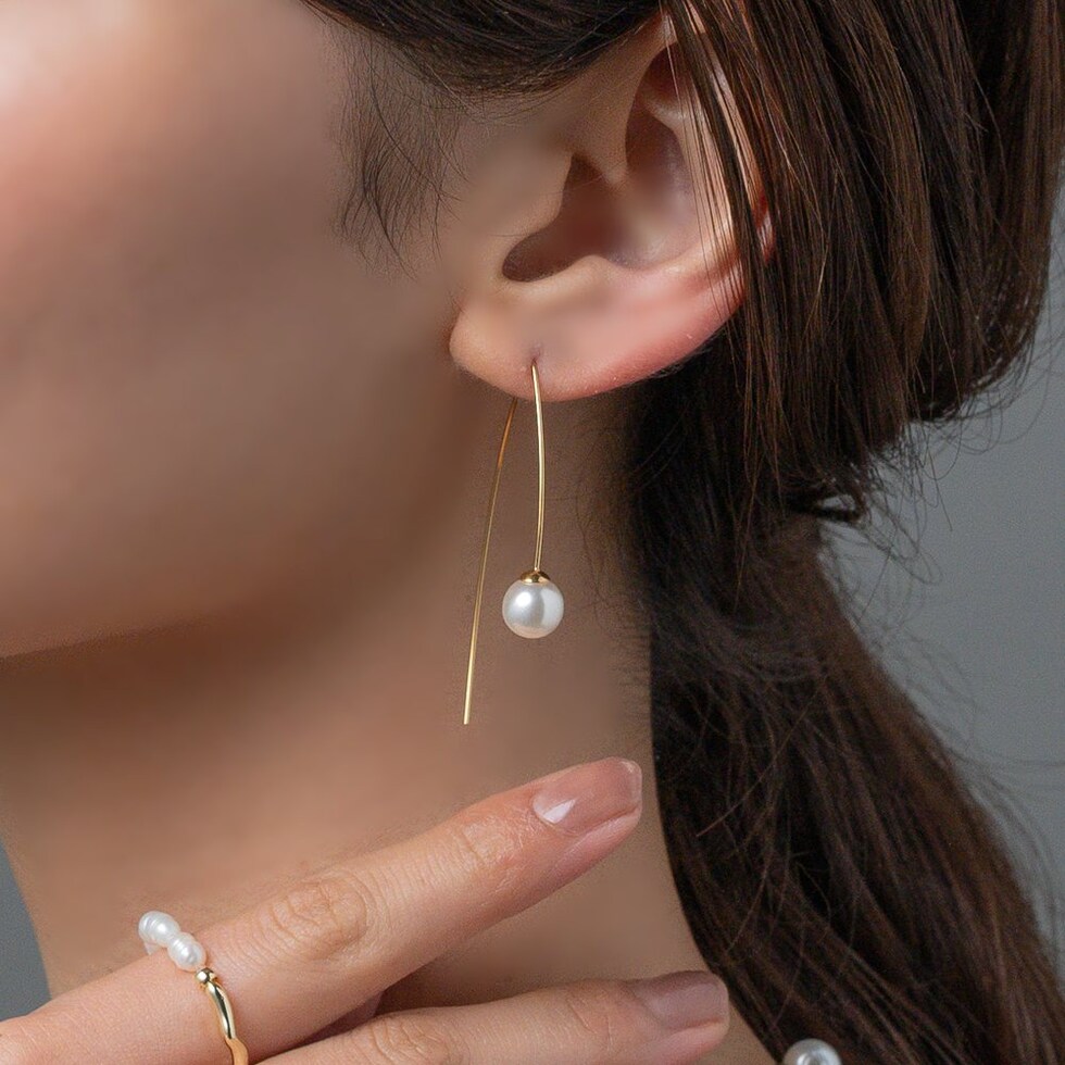 緩やかにカーブを描いたラインの先に艶めくパールをあしらったワイヤーピアス。華奢でスタイリッシュなワイヤーに一粒パールを添えた上品なデザインが華やかな耳元を演出◎デイリーはもちろん、パーティーシーンなどにも活躍するアイテムです。錆びにくく傷に強いステンレス製で、長時間の着用も安心の低アレルギー素材です。