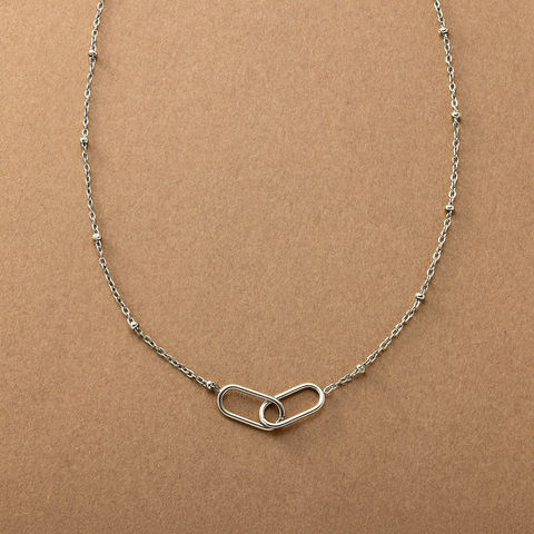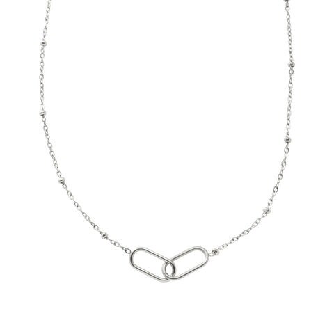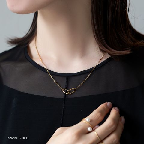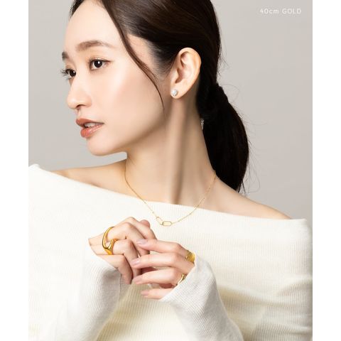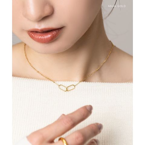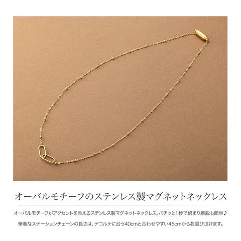 オーバルモチーフがアクセントを添えるステンレス製マグネットネックレス。パチッと1秒で留まり着脱も簡単♪華奢なステーションチェーンの長さは、デコルテに沿う40cmと合わせやすい45cmからお選び頂けます。