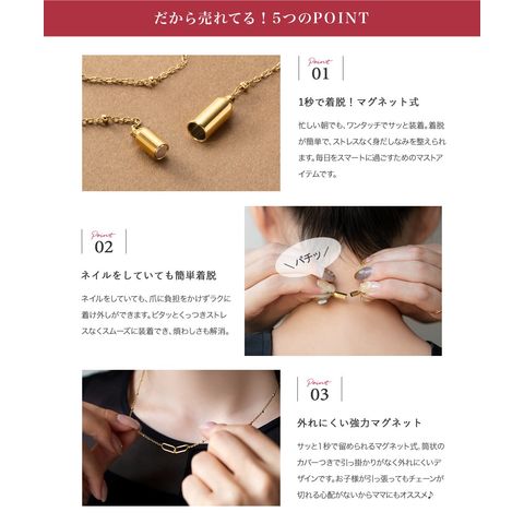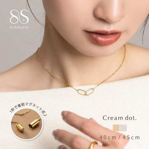ネックレス ステンレス 金属アレルギー サージカルステンレス レディース マグネットクラスプ 1秒着脱 ワンタッチ 簡単装着 つけっぱなし ステンレス ショート チェーン オーバル ダブルループ cream dot ゆうパケット [シルバー_40cm]
