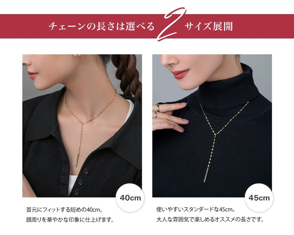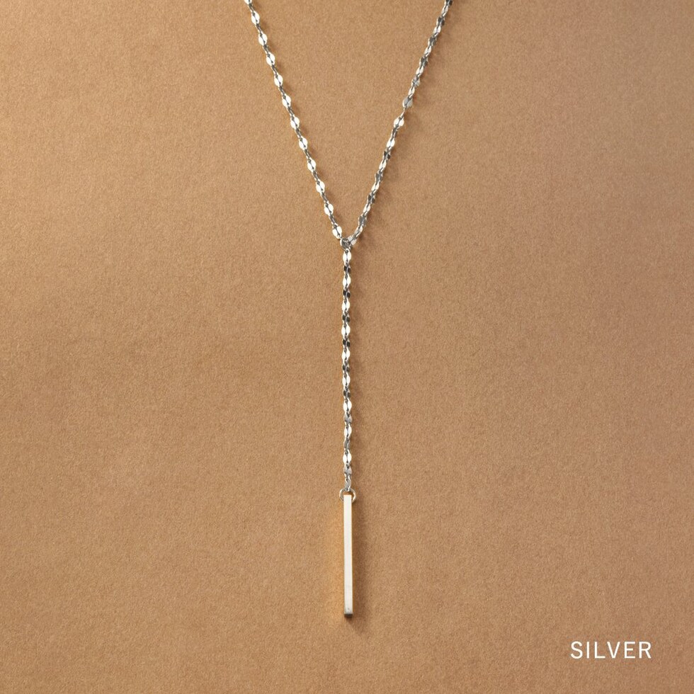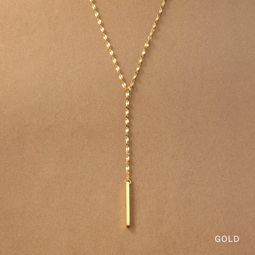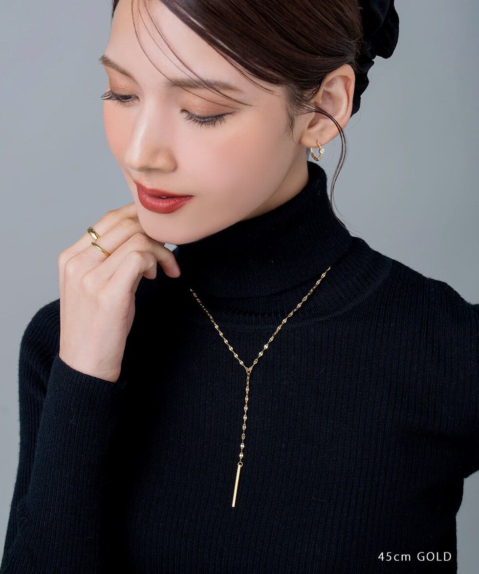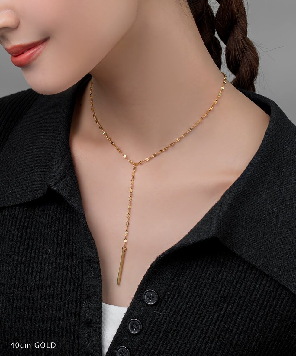 メタルバーとペタルチェーンのステンレス製マグネットネックレス。パチッと1秒で留まり着脱も簡単♪Y字のシルエットがコーデにアクセントをプラス◎デコルテに沿う40cmと合わせやすい45cmからお選び頂けます。
