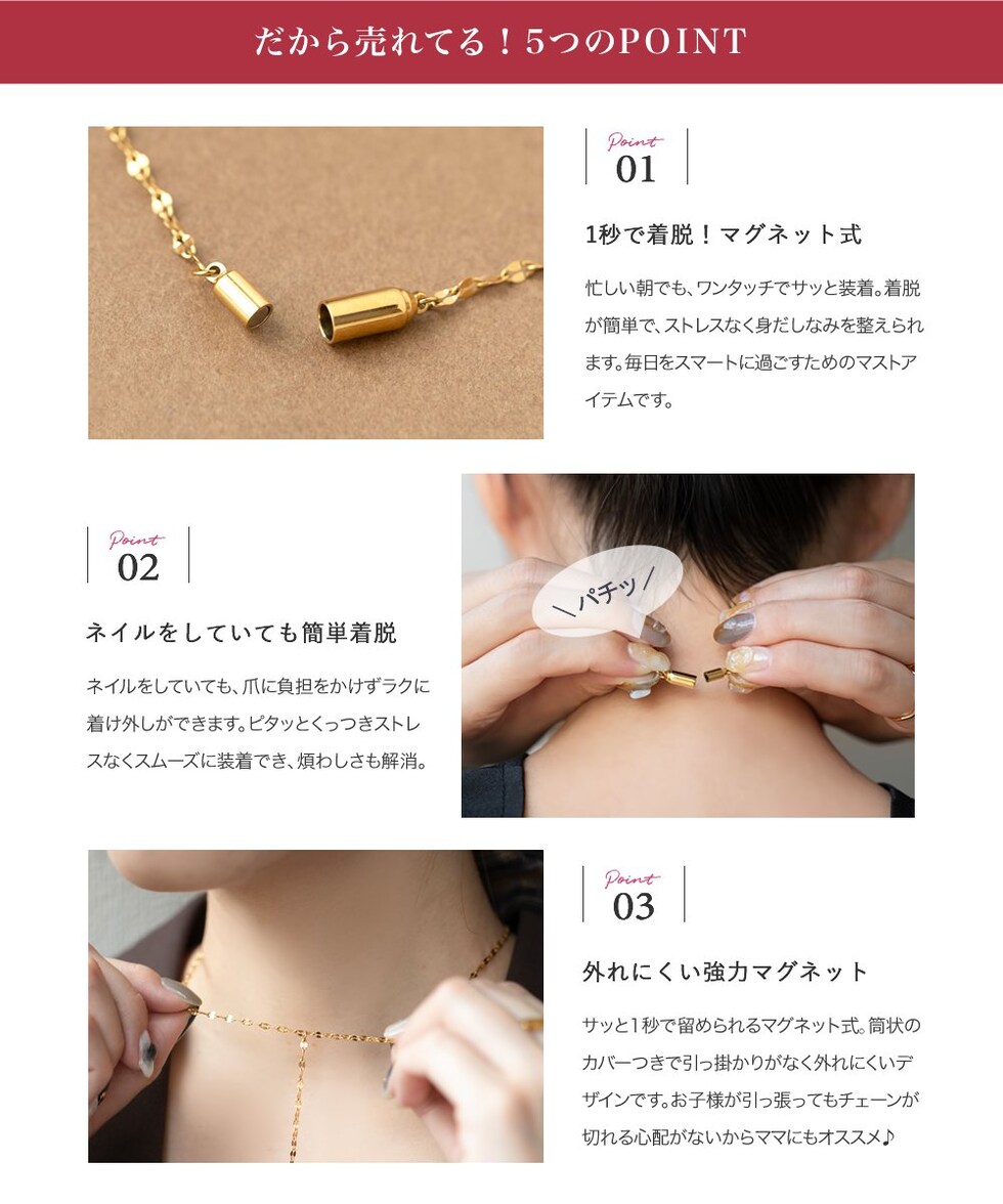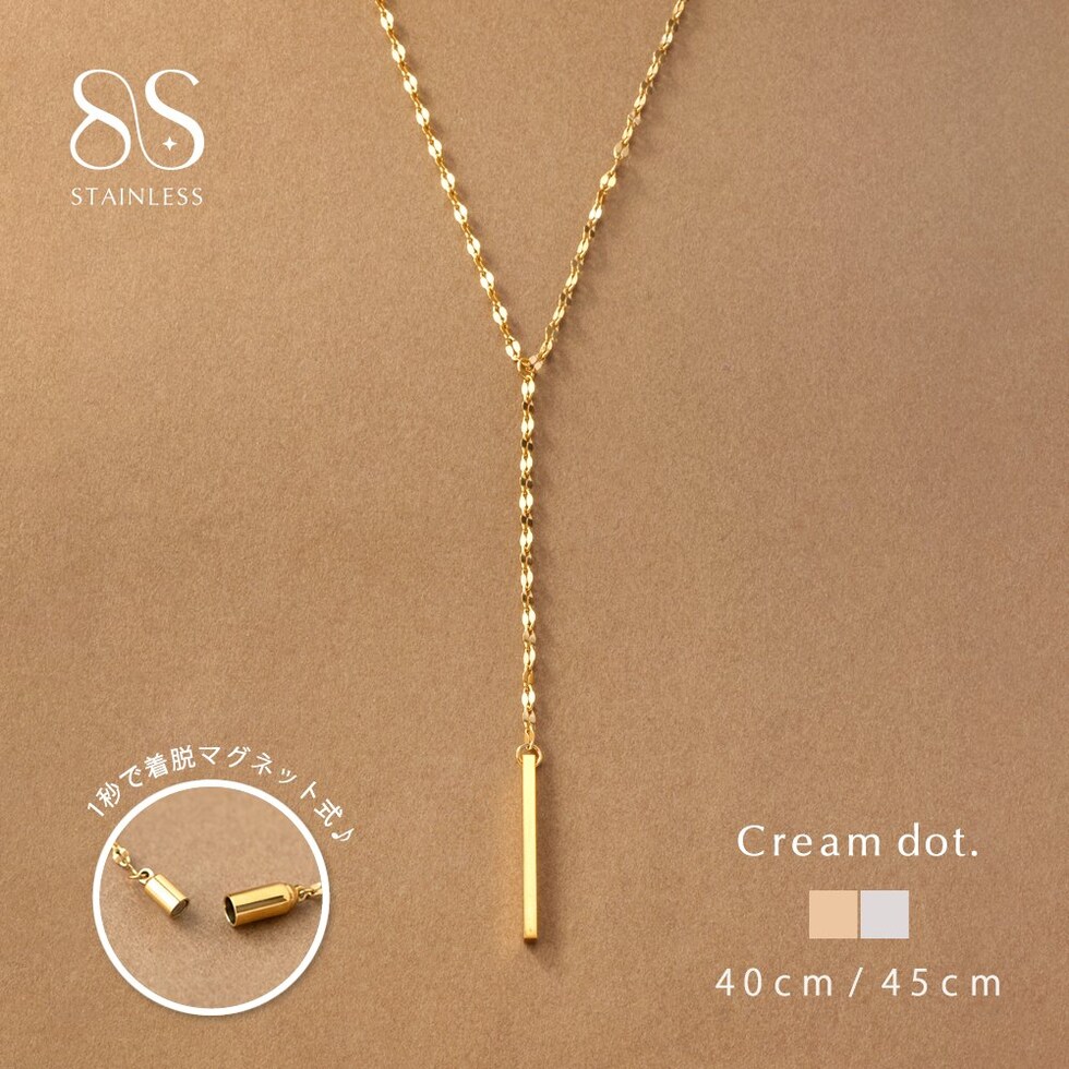 ネックレス ステンレス 金属アレルギー サージカルステンレス レディース マグネットクラスプ 1秒着脱 ワンタッチ 簡単装着 つけっぱなし ステンレス ショート ペタルチェーン メタルバー Y字 2サイズ cream dot ゆうパケット [シルバー_40cm]