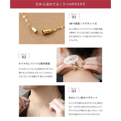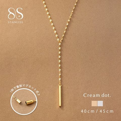 ネックレス ステンレス 金属アレルギー サージカルステンレス レディース マグネットクラスプ 1秒着脱 ワンタッチ 簡単装着 つけっぱなし ステンレス ショート ペタルチェーン メタルバー Y字 2サイズ cream dot ゆうパケット [シルバー_45cm]