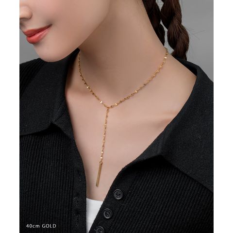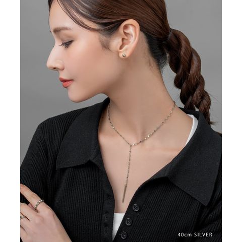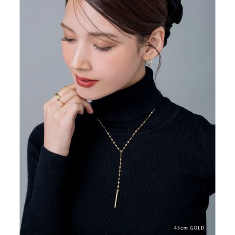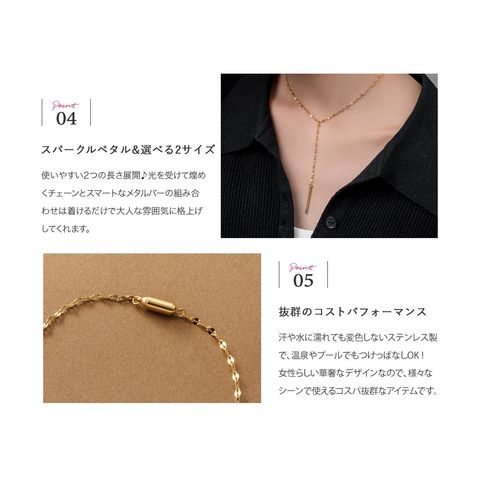 メタルバーとペタルチェーンのステンレス製マグネットネックレス。パチッと1秒で留まり着脱も簡単♪Y字のシルエットがコーデにアクセントをプラス◎デコルテに沿う40cmと合わせやすい45cmからお選び頂けます。