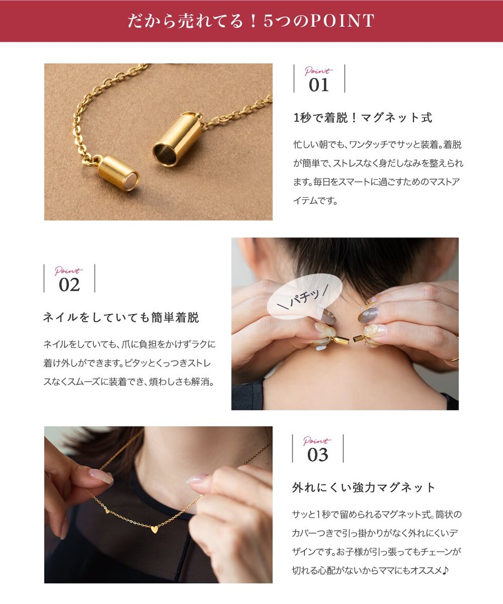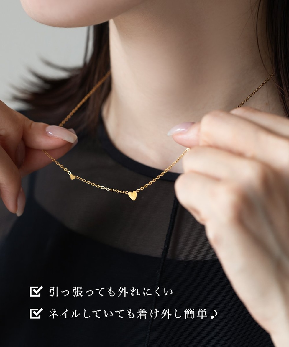 ネックレス ステンレス 金属アレルギー サージカルステンレス レディース マグネットクラスプ 1秒着脱 ワンタッチ 簡単装着 つけっぱなし ステンレス ショート チェーン ハート ミニ cream dot ゆうパケット [ゴールド_40cm]