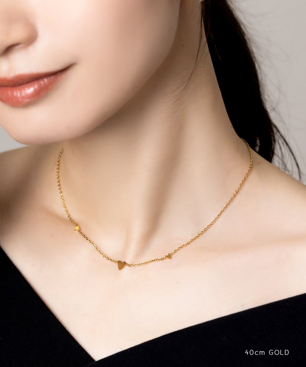 ミニサイズのハートプレートがアクセントのステンレス製マグネットネックレス。パチッと1秒で留まり着脱も簡単♪3つのハートがさりげなく遊び心あるデザイン◎デコルテに沿う40cmと合わせやすい45cmからお選び頂けます。