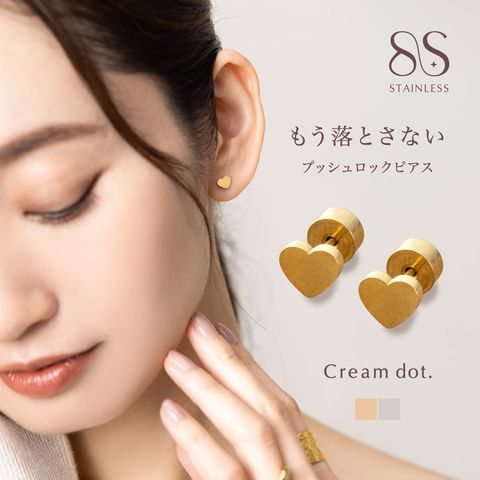 ピアス ステンレス 金属アレルギー サージカルステンレス レディース ステンレス プッシュロック つけっぱなし 簡単装着 落ちない 両耳用 プッシュ型 ハート ミニ cream dot ゆうパケット [ゴールド_ピアス]