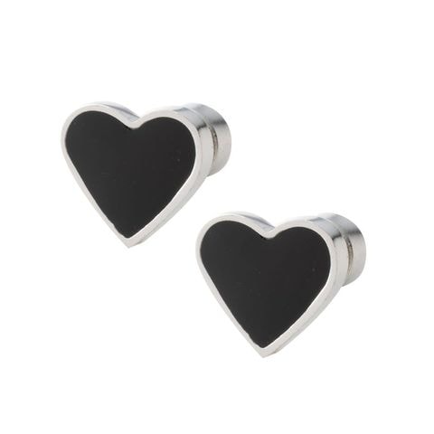 ピアス ステンレス 金属アレルギー サージカルステンレス レディース ステンレス プッシュロック つけっぱなし 簡単装着 落ちない 両耳用 プッシュ型 ハート 艶 cream dot ゆうパケット [ブラック×シルバー_ピアス]