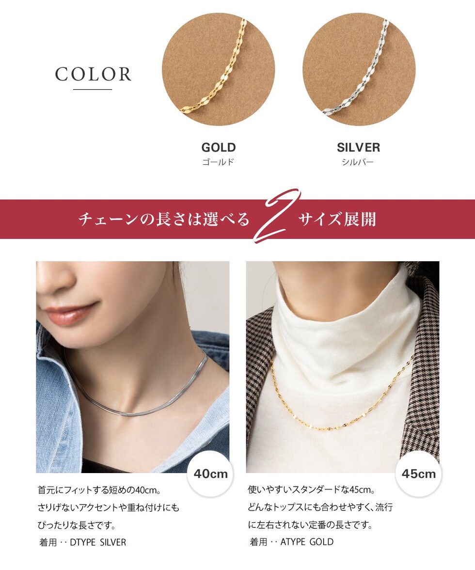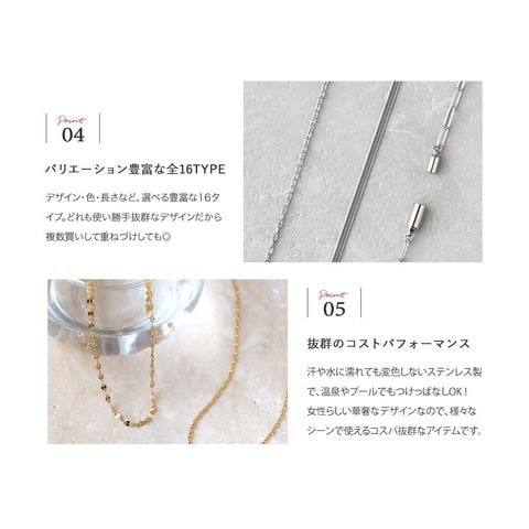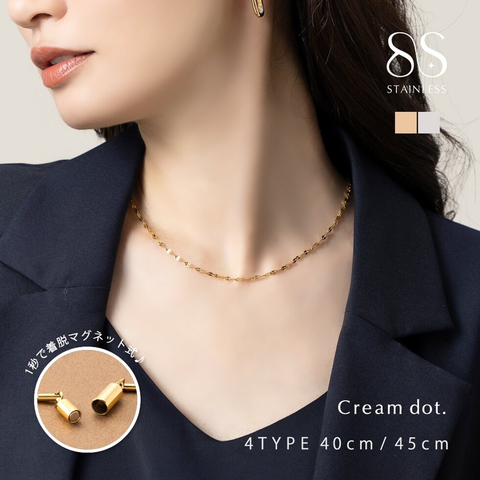 ネックレス ステンレス 金属アレルギー サージカルステンレス レディース マグネットクラスプ 1秒着脱 ワンタッチ 簡単装着 つけっぱなし ステンレス ショート チェーン 4タイプ cream dot ゆうパケット [B:シルバー_45cm]