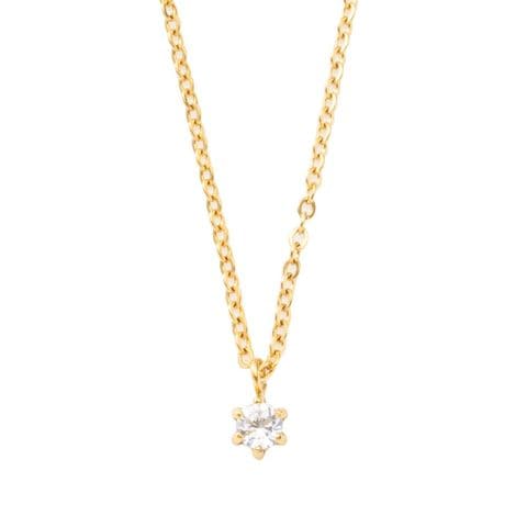 6本爪で固定された一粒ビジューが胸元で品良く煌めきます。着けていることを忘れるくらいの軽やかさで長時間の着用にもおすすめです。