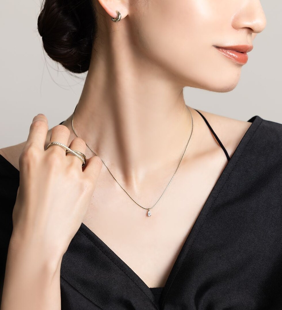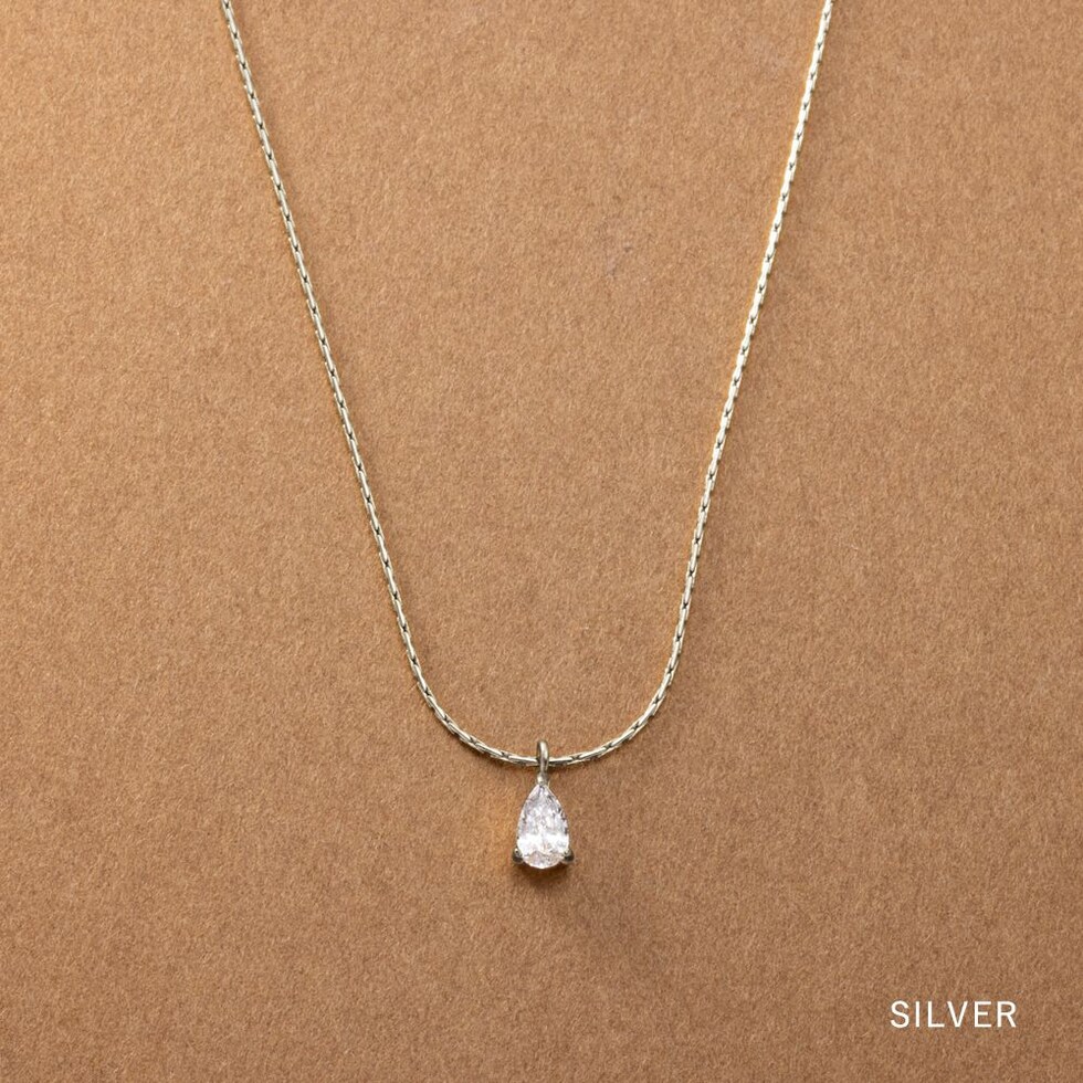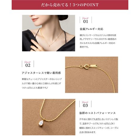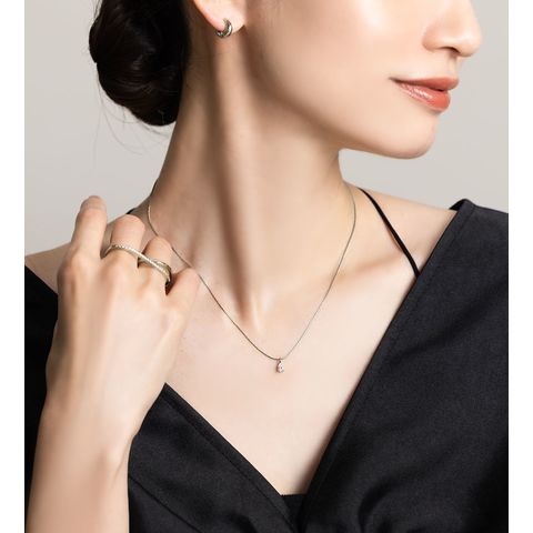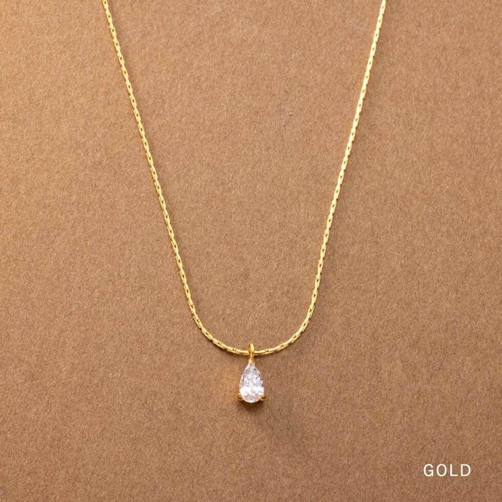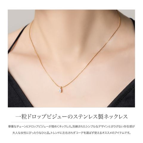 華奢なチェーンにドロップビジューが煌めくネックレス。洗練されたシンプルなデザインとさりげない存在感が大人な女性にぴったりなひと品。トレンドに左右されずコーデを選ばず使えるオススメのアイテムです。