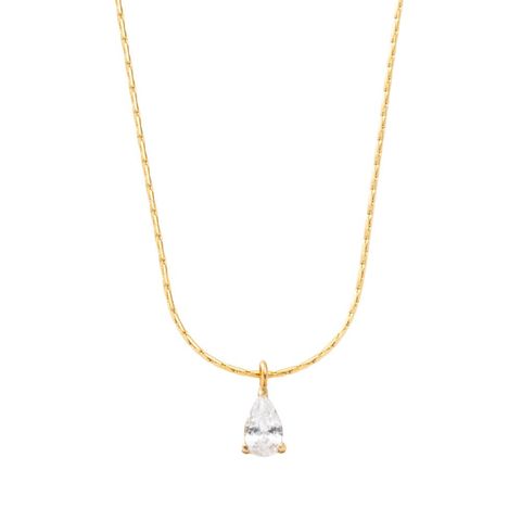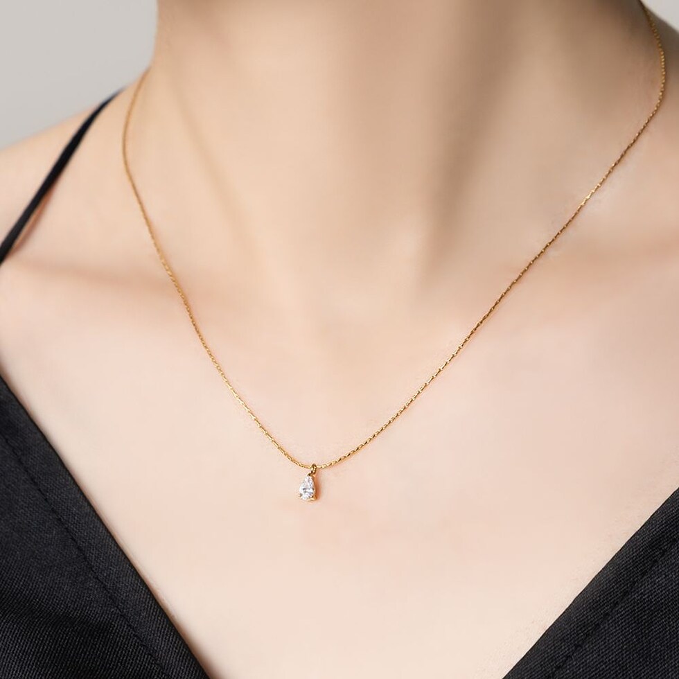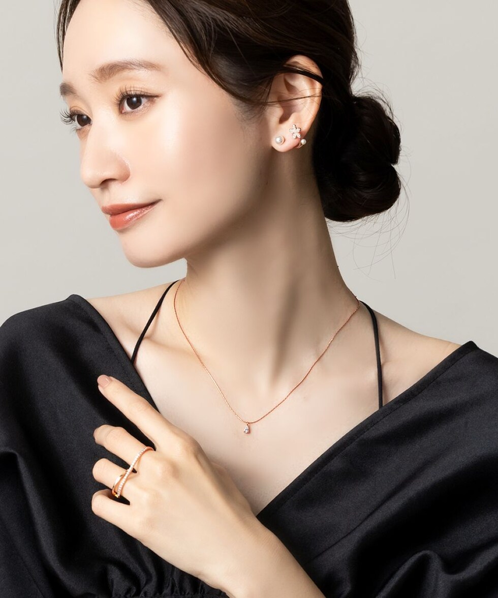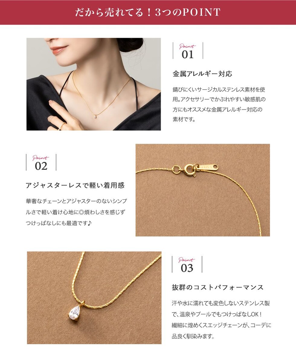華奢なチェーンにドロップビジューが煌めくネックレス。洗練されたシンプルなデザインとさりげない存在感が大人な女性にぴったりなひと品。トレンドに左右されずコーデを選ばず使えるオススメのアイテムです。