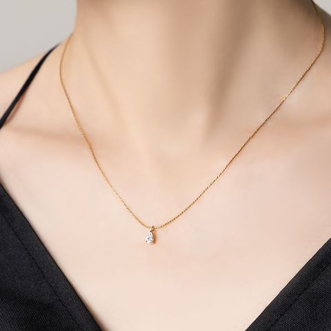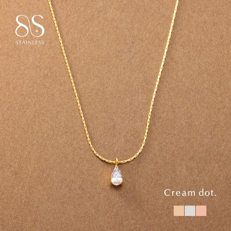 ネックレス ステンレス 金属アレルギー サージカルステンレス レディース つけっぱなし ショート チェーン ビジュー ドロップ 雫 一粒 cream dot ゆうパケット [ゴールド_ワンサイズ]