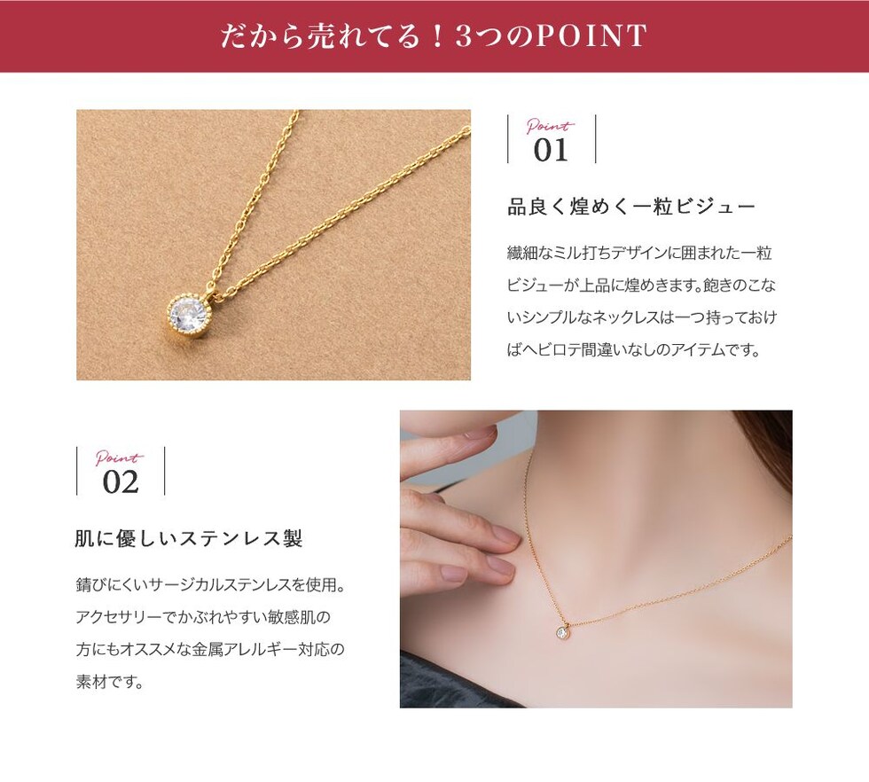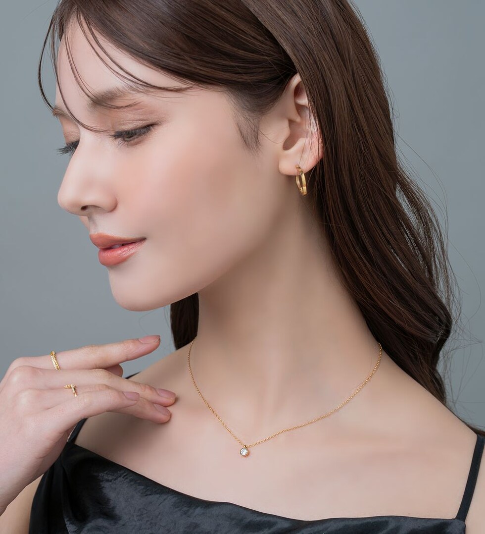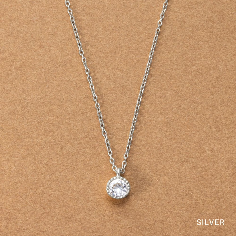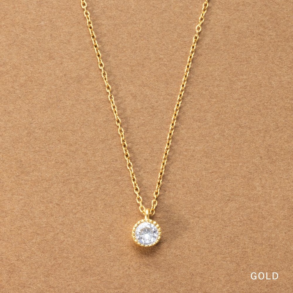 華奢なチェーンに繊細なミル打ちデザインで囲まれた一粒ビジューが煌めくネックレス。本格派な輝きと長く使えるステンレス素材で大人の女性にぴったり。オン・オフを問わずどんなシーンでも使い勝手の良いアイテムです。