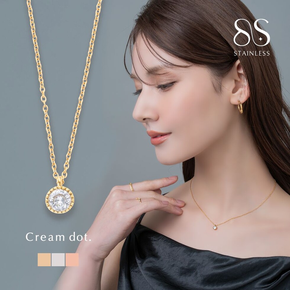 ネックレス ステンレス 金属アレルギー サージカルステンレス レディース つけっぱなし ショート チェーン ビジュー 一粒ビジュー ミル打ち cream dot ゆうパケット [ゴールド_ワンサイズ]