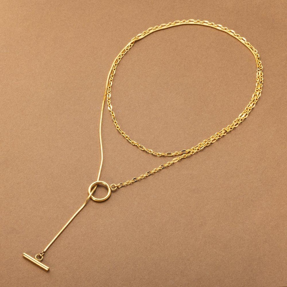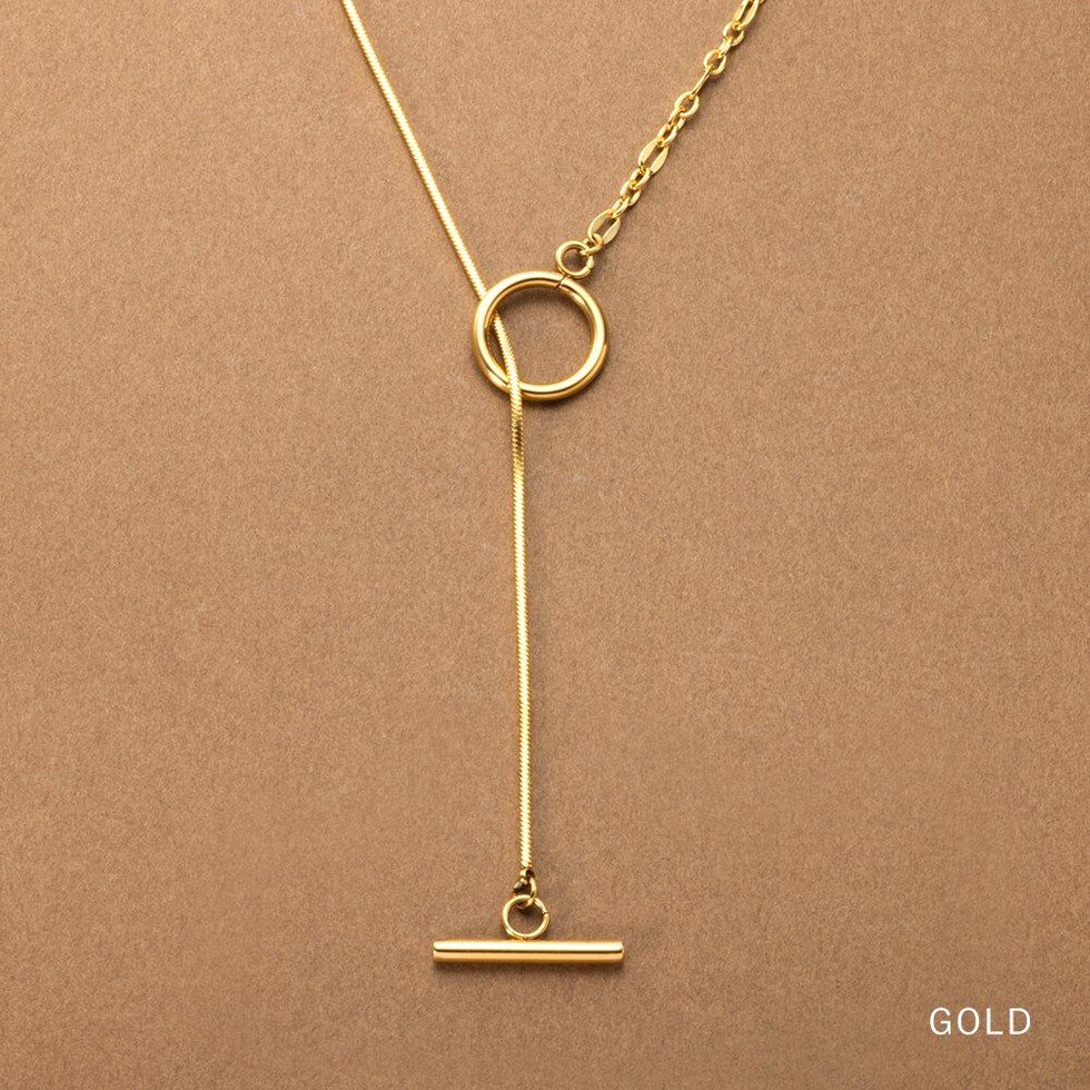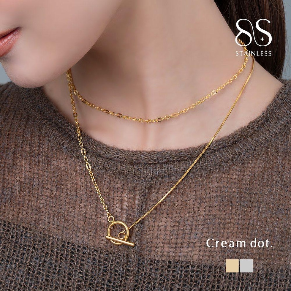 ネックレス ステンレス 金属アレルギー サージカルステンレス レディース つけっぱなし ロング チェーン 切り替え y字 ラリエット 2連 3way マンテル 着脱簡単 cream dot ゆうパケット [ゴールド_ワンサイズ]