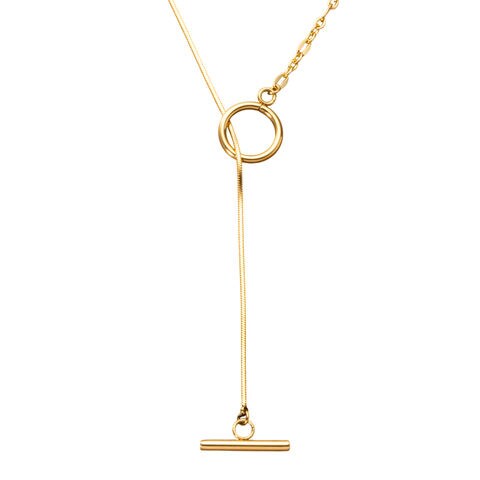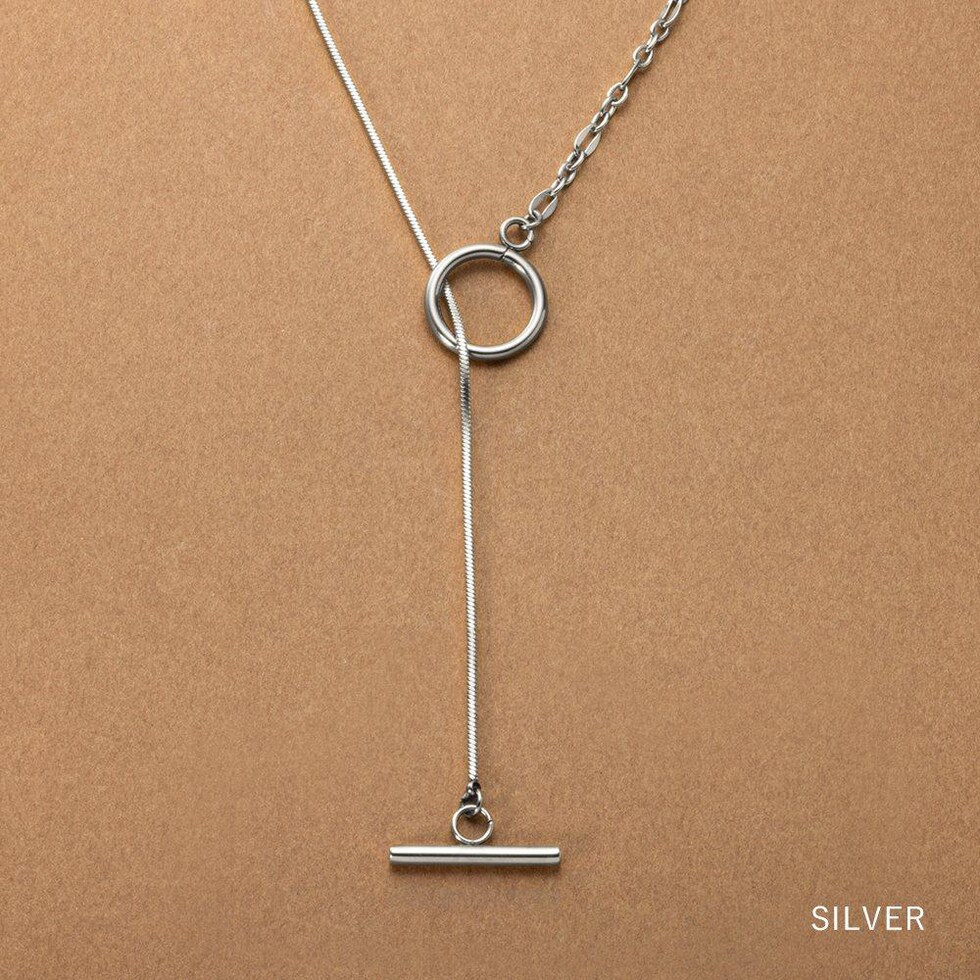 しなやかなスネークチェーンとあずきチェーンを組み合わせたY字ロングネックレス。錆びにくいステンレス製だからデイリー使いにぴったり。2連やロングスタイルにしてもお使いいただける3WAY仕様です。