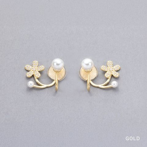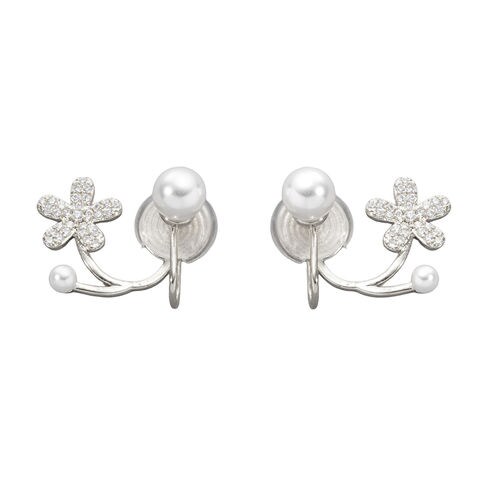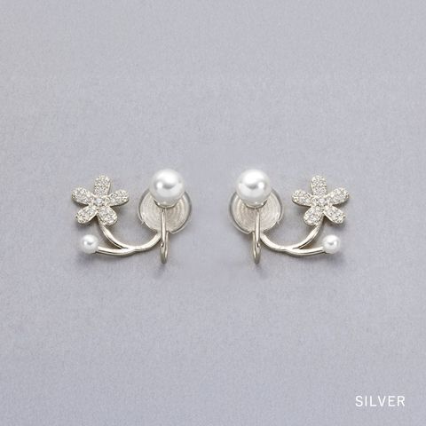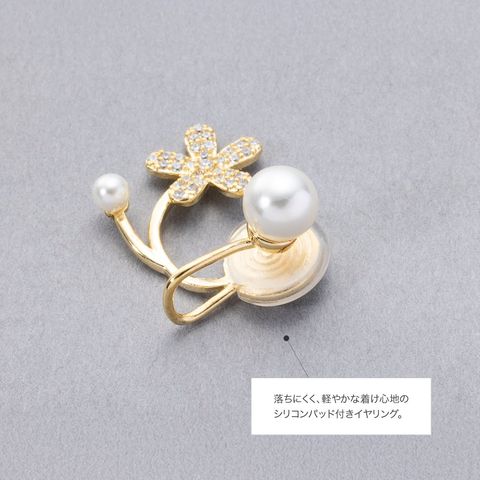ピアス イヤリング 金属アレルギー ニッケルフリー レディース バックキャッチ ワイヤーフィット 挟むだけ シリコンカバー パール パヴェ ビジュー フラワー 重ね着け風 cream dot ゆうパケット [シルバー_イヤリング]