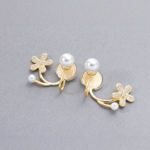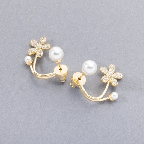 耳たぶに沿うパヴェフラワー×パールのレイヤード風ピアス/イヤリング。繊細な煌めきと、重ね着けしたようなデザインが大人可愛いアイテム。普段使いはもちろん、結婚式・お呼ばれ・パーティーシーンなどで幅広く活躍しそう。