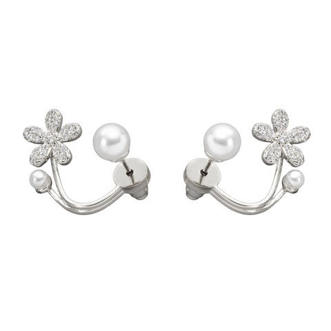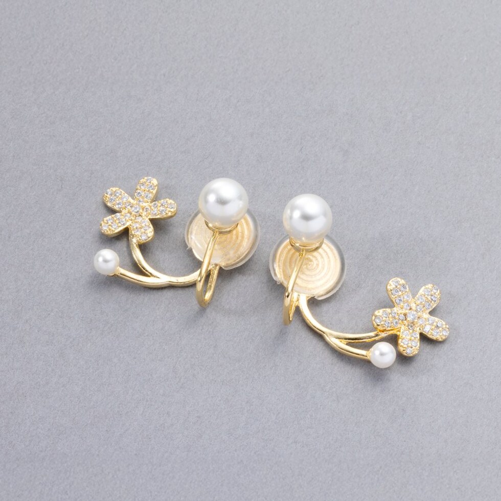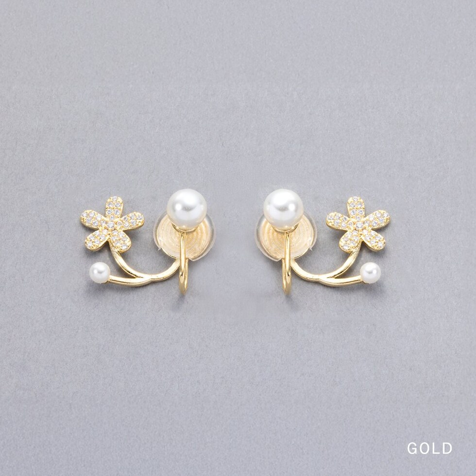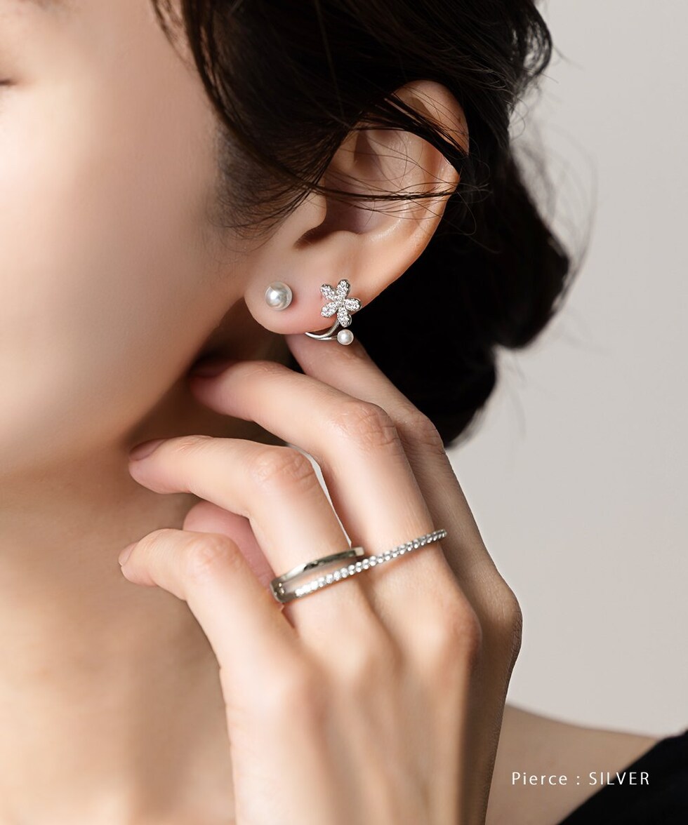 ピアス イヤリング 金属アレルギー ニッケルフリー レディース バックキャッチ ワイヤーフィット 挟むだけ シリコンカバー パール パヴェ ビジュー フラワー 重ね着け風 cream dot ゆうパケット [シルバー_ピアス]