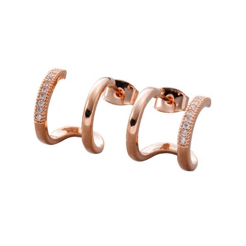繊細に煌めくビジューラインとプレーンメタルのダブルラインイヤリング/ピアス。重ねづけのようなデザインが程よい存在感を放ち、大人の上品さを演出◎シーンを選ばず身につけられるからデイリー使いにおすすめです。