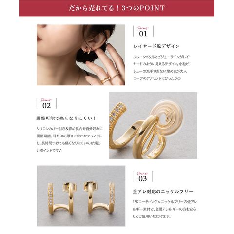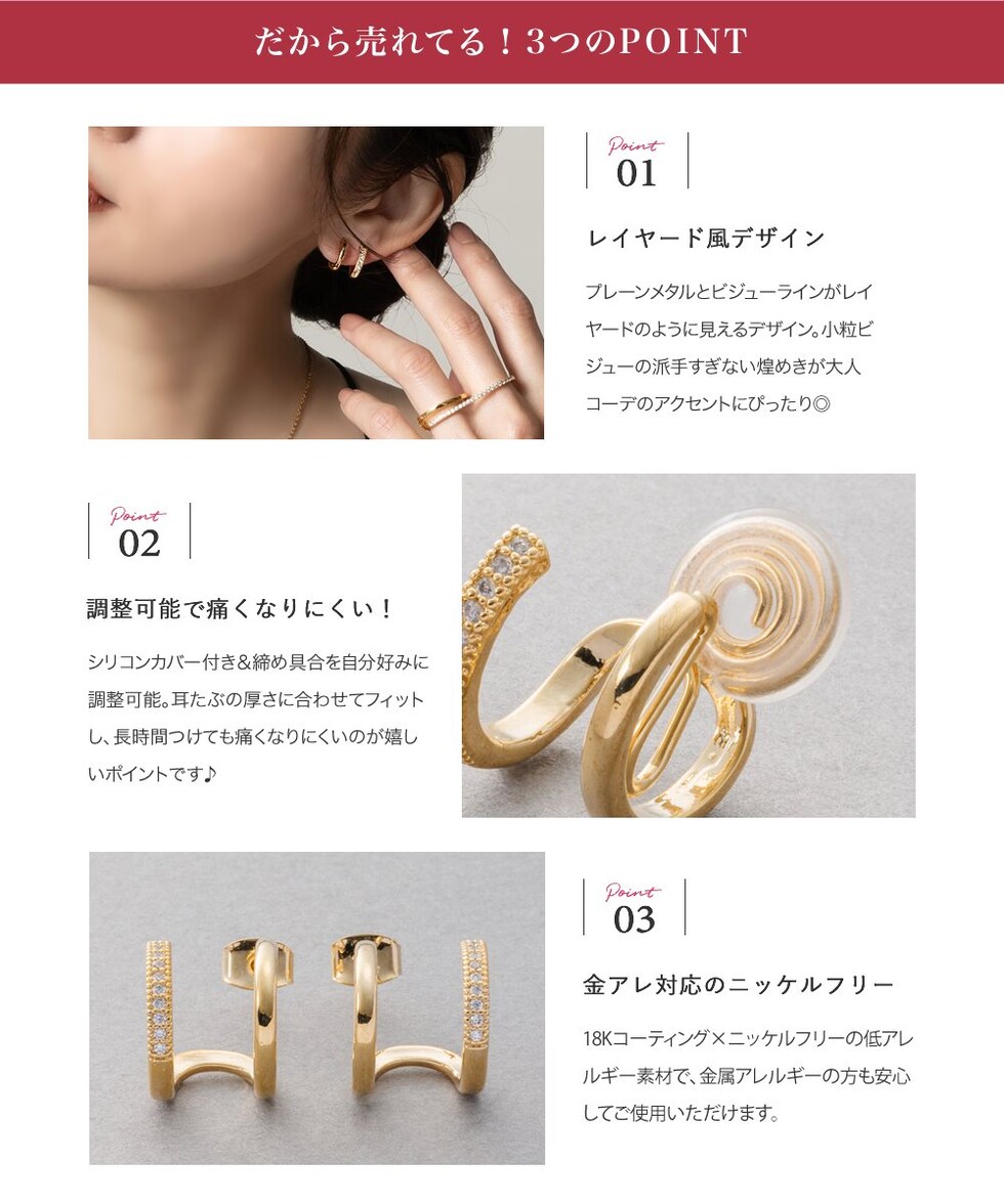 シリコンカバー付き&締め具合を自分好みに調整可能。耳たぶの厚さに合わせてフィットし、長時間つけても痛くなりにくいのが嬉しいポイントです♪