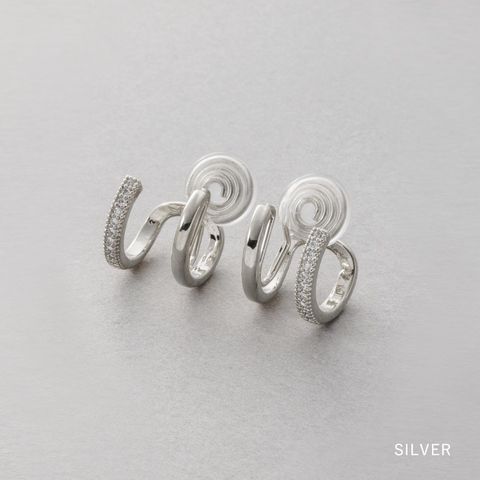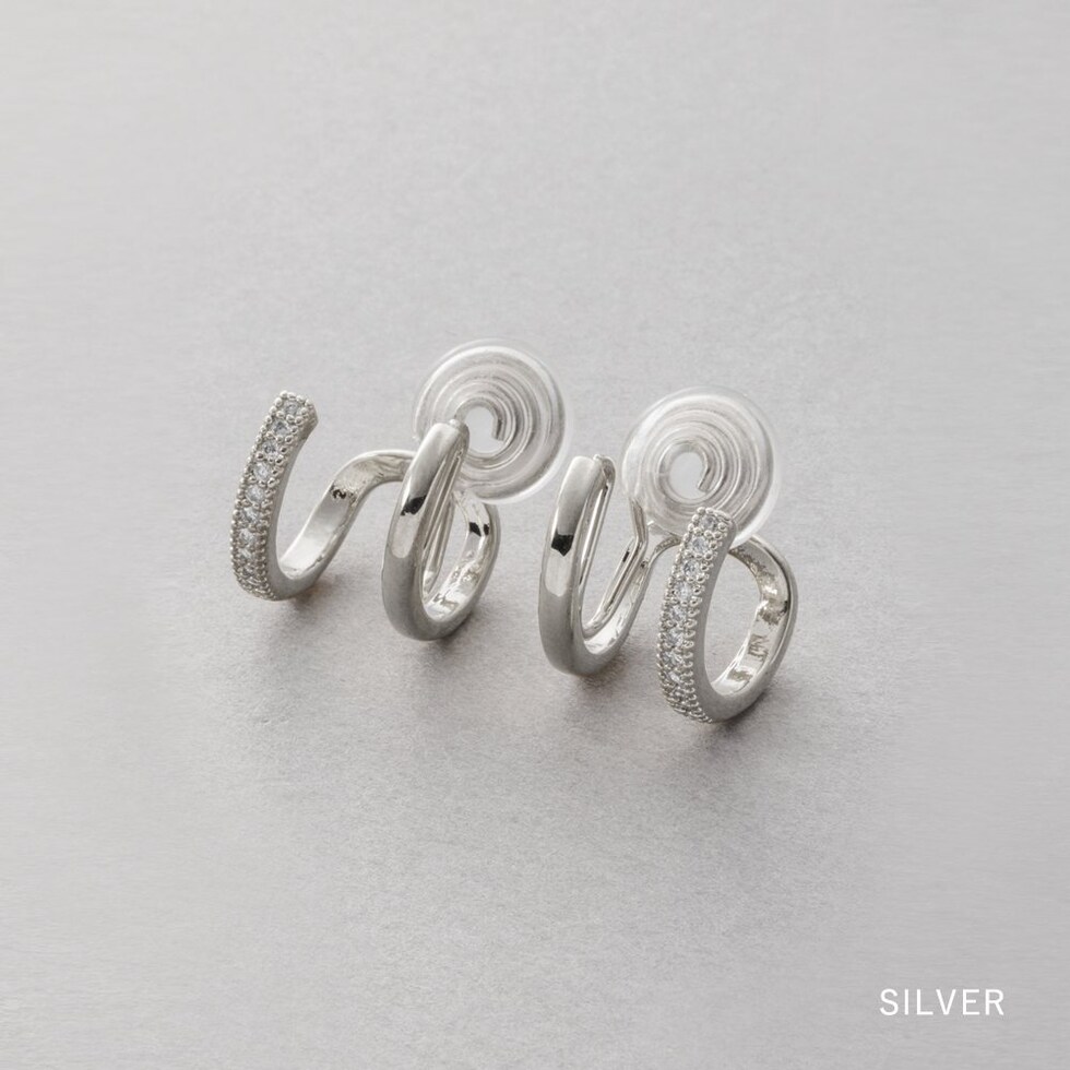 イヤリング ピアス 金属アレルギー ニッケルフリー レディース ワイヤーフィット 挟むだけ 見え シリコンカバー ビジュー レイヤード風 cream dot ゆうパケット [シルバー_ピアス]
