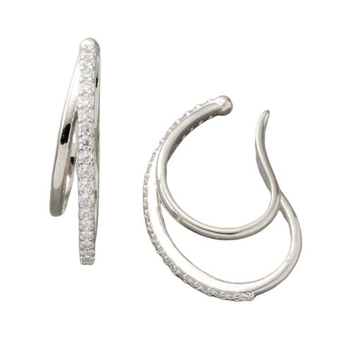 レイヤード風ダブルカーブラインの両耳用イヤーカフ。大小2つのカーブラインカフを重ね着けしたようなレイヤード風デザイン。これひとつちょい足しするだけで一気にお洒落度アップする優秀アイテムです◎