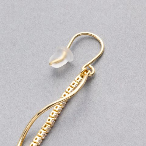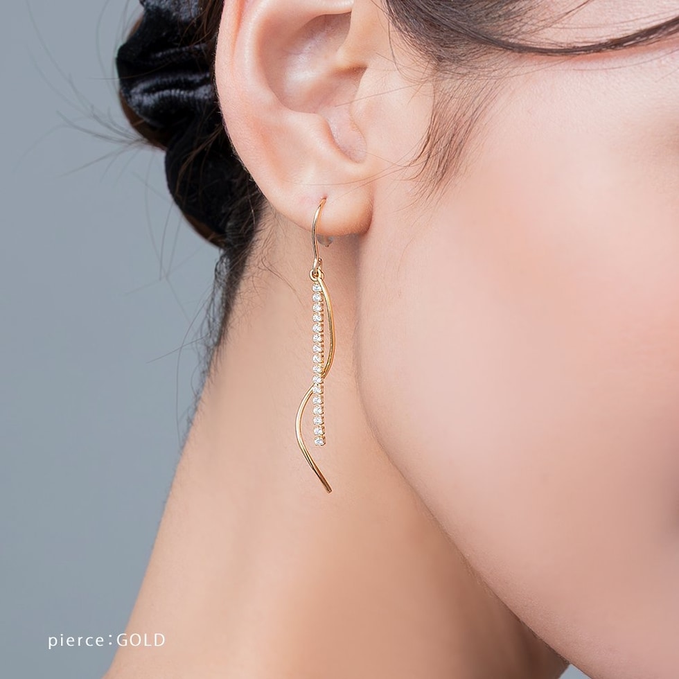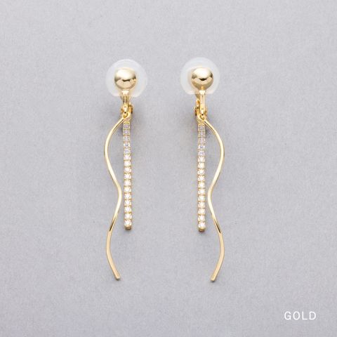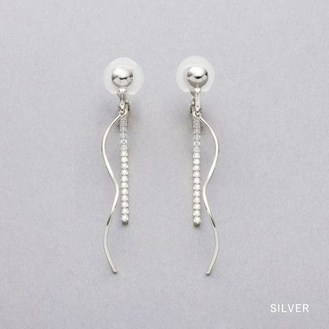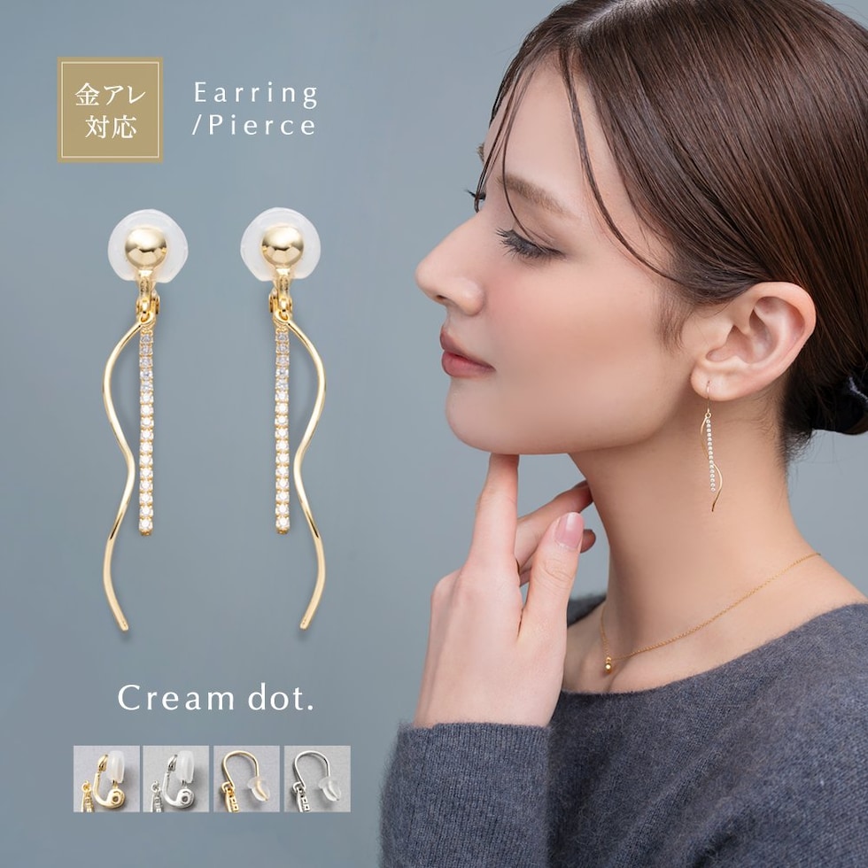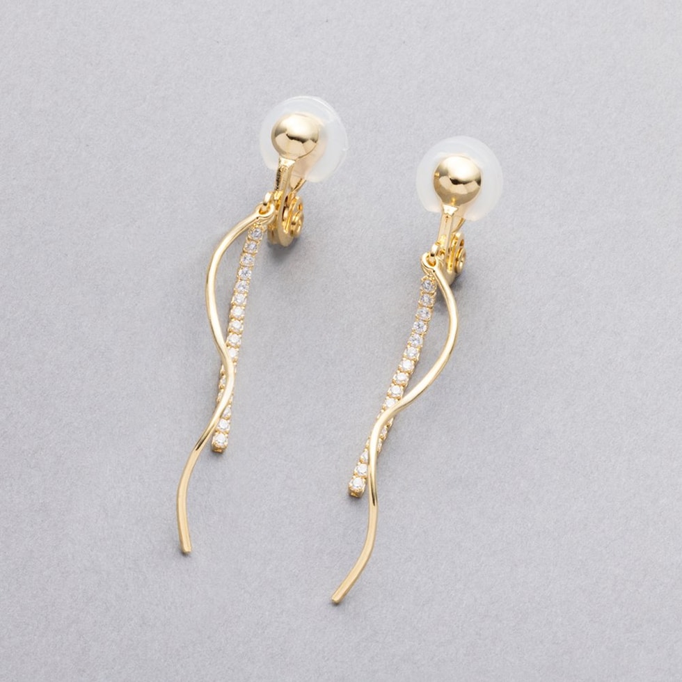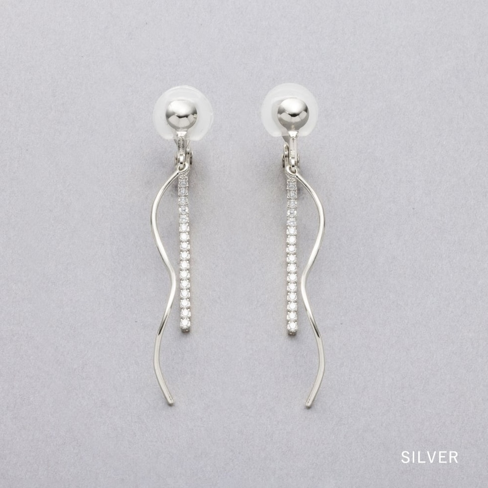 イヤリング ピアス 金属アレルギー ニッケルフリー レディース クリップ式 フック ビジュー ウェーブ メタル 揺れる ビジューライン cream dot ゆうパケット [シルバー_ピアス]
