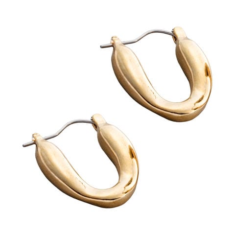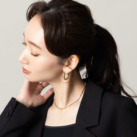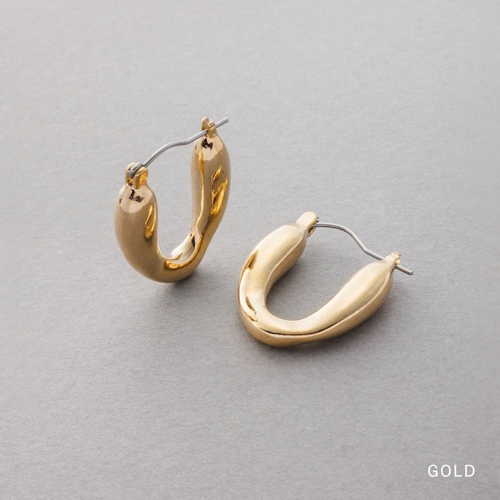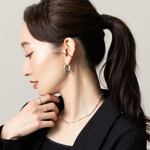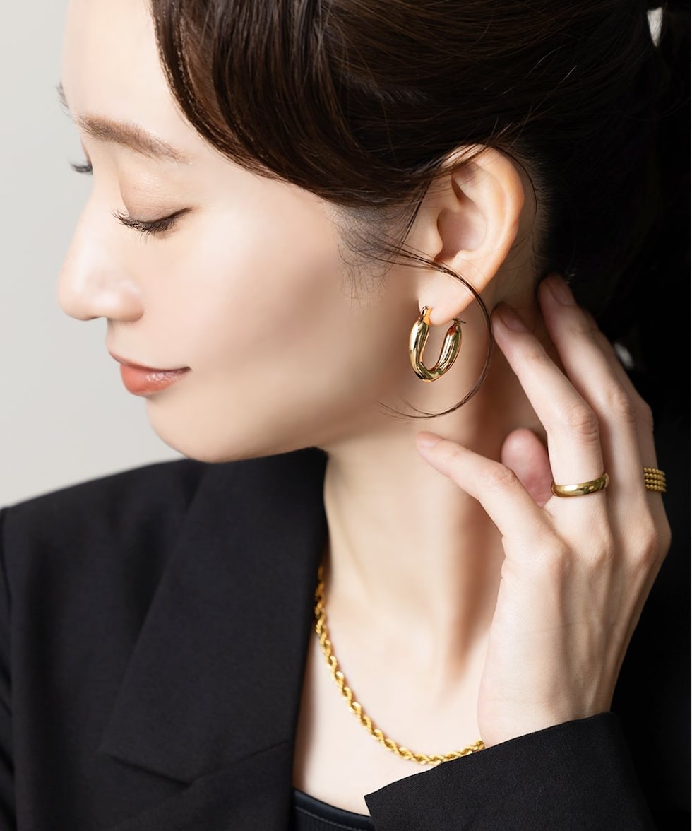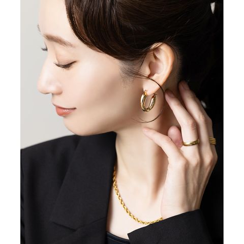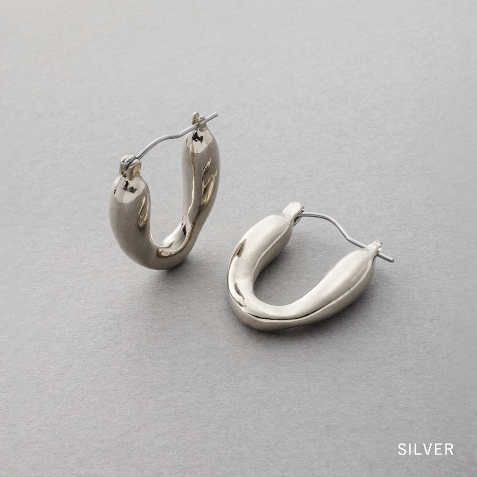 絶妙に“歪み”を加えたぷっくりとしたメタルのフォルムが斬新で、耳元を大人モダンに印象付けます。