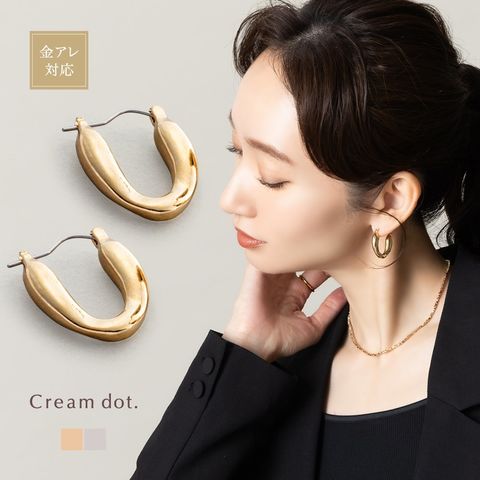 ピアス 金属アレルギー ニッケルフリー レディース キャッチレス 開閉式 ワンタッチ ぷっくり U字 メタル フープ 歪み cream dot ゆうパケット [ゴールド_ピアス]