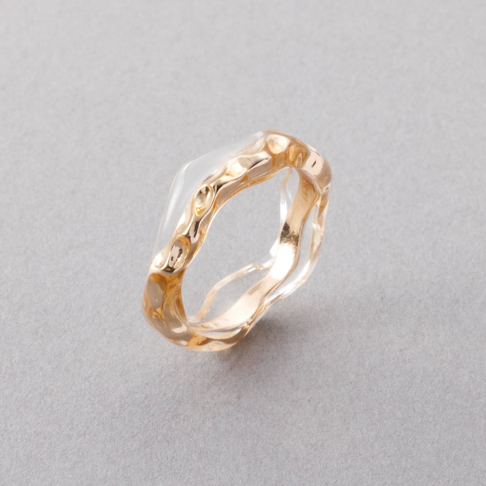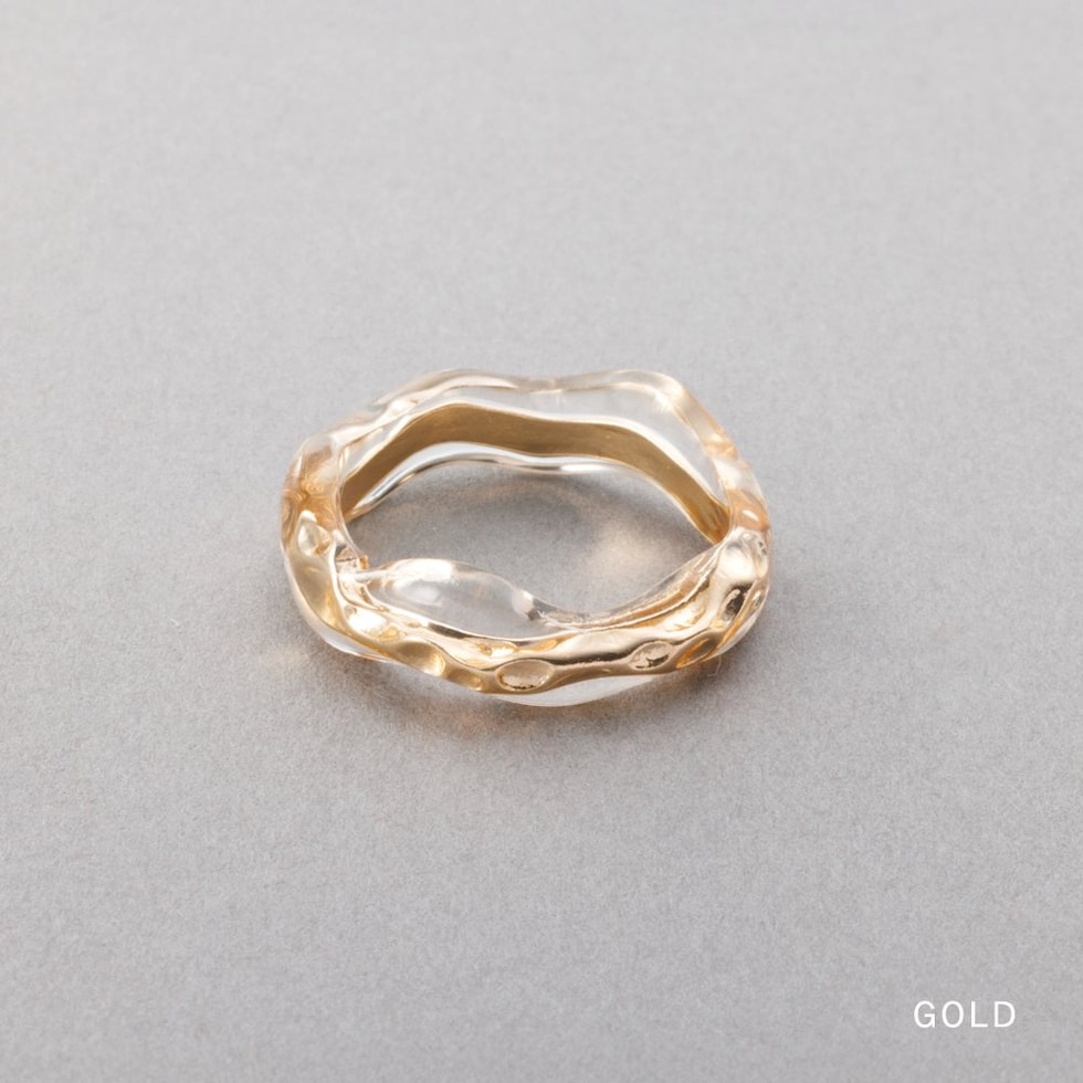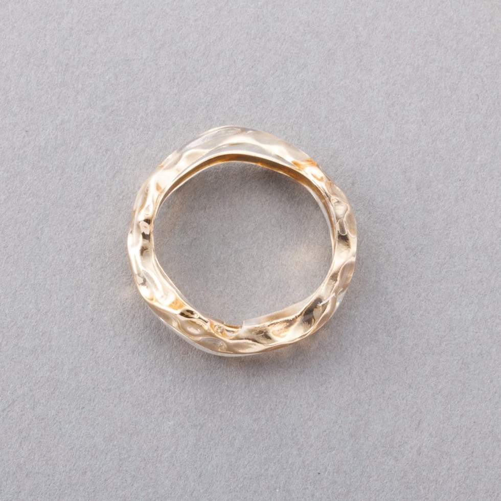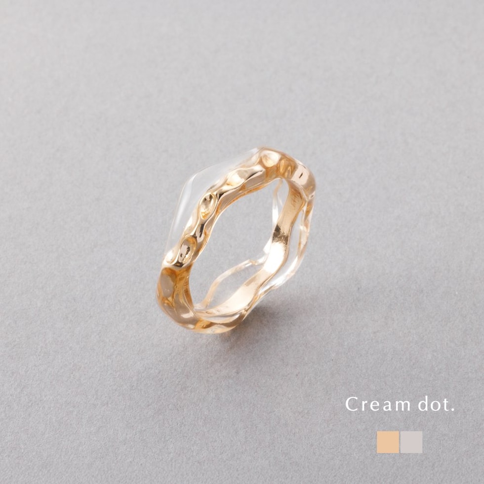 リング 指輪 レディース ナミナミ ウェーブ クリアカラー メタル封入 凹凸加工 たたき クラフト調 歪み cream dot ゆうパケット [ゴールド_15号]