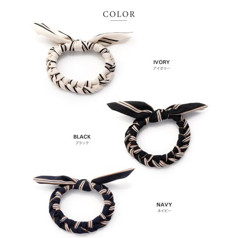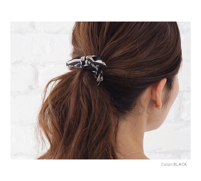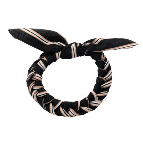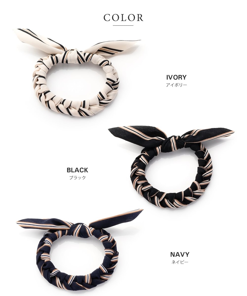 ヘアアクセサリー レディース ヘアゴム リボン ストライプ 編み込み ハンドメイド ヘアアレンジ cream dot ゆうパケット [ブラック_ワンサイズ]